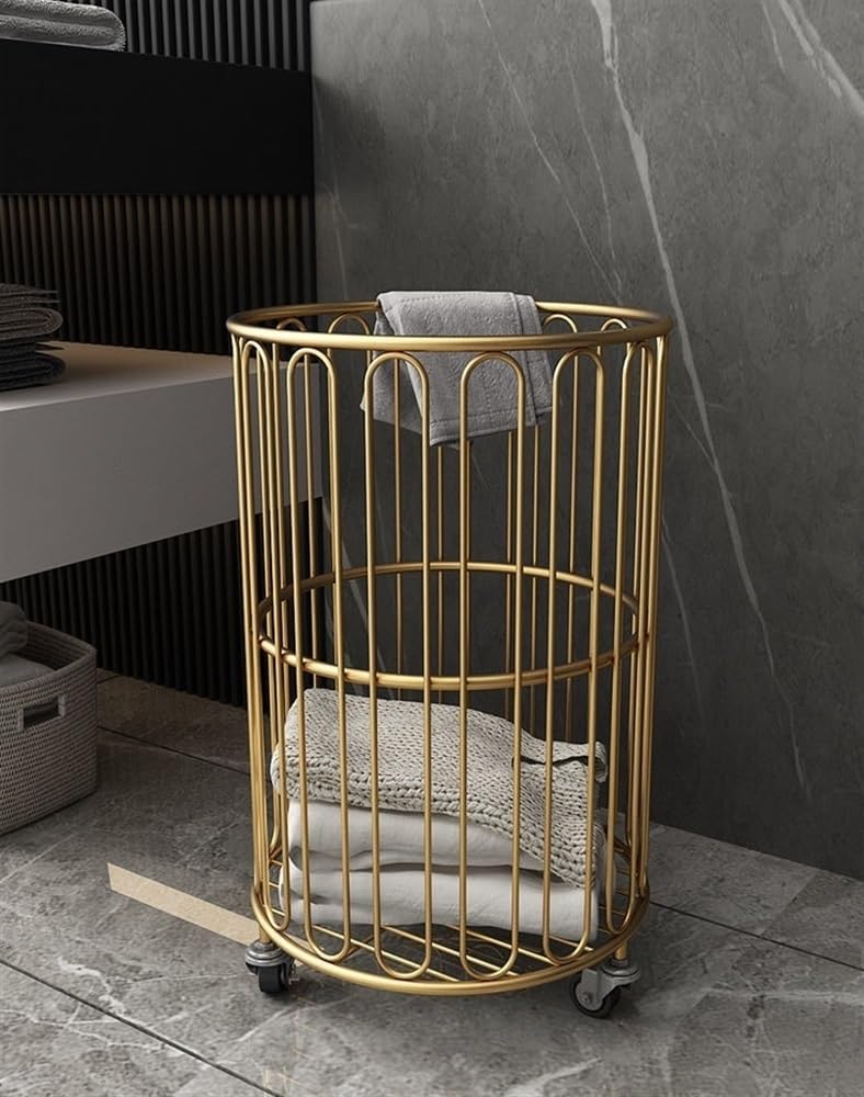 YDKJWB Laundry Basket with Wheels Metal Laundry Basket Cart Dirty Clothes Basket Storage Basket for Living Room Bathroom Closet Bedroom Laundry Room (
