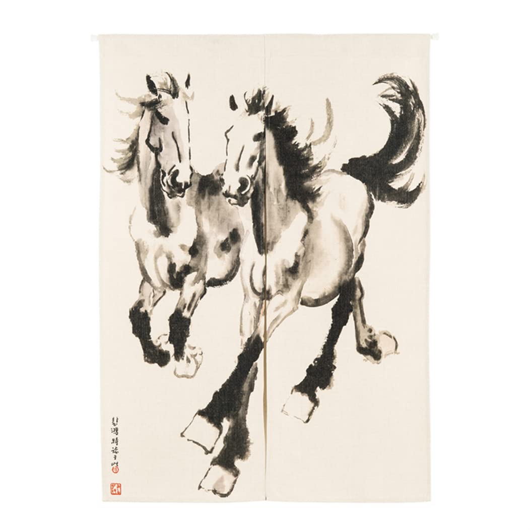 RLoncomix Japanese Noren Door Curtain Traditional Chinese Ink Horses Painting Doorway Curtain Tapestry for Entrance Hanging Home Decor, 33.5" x 47.2"