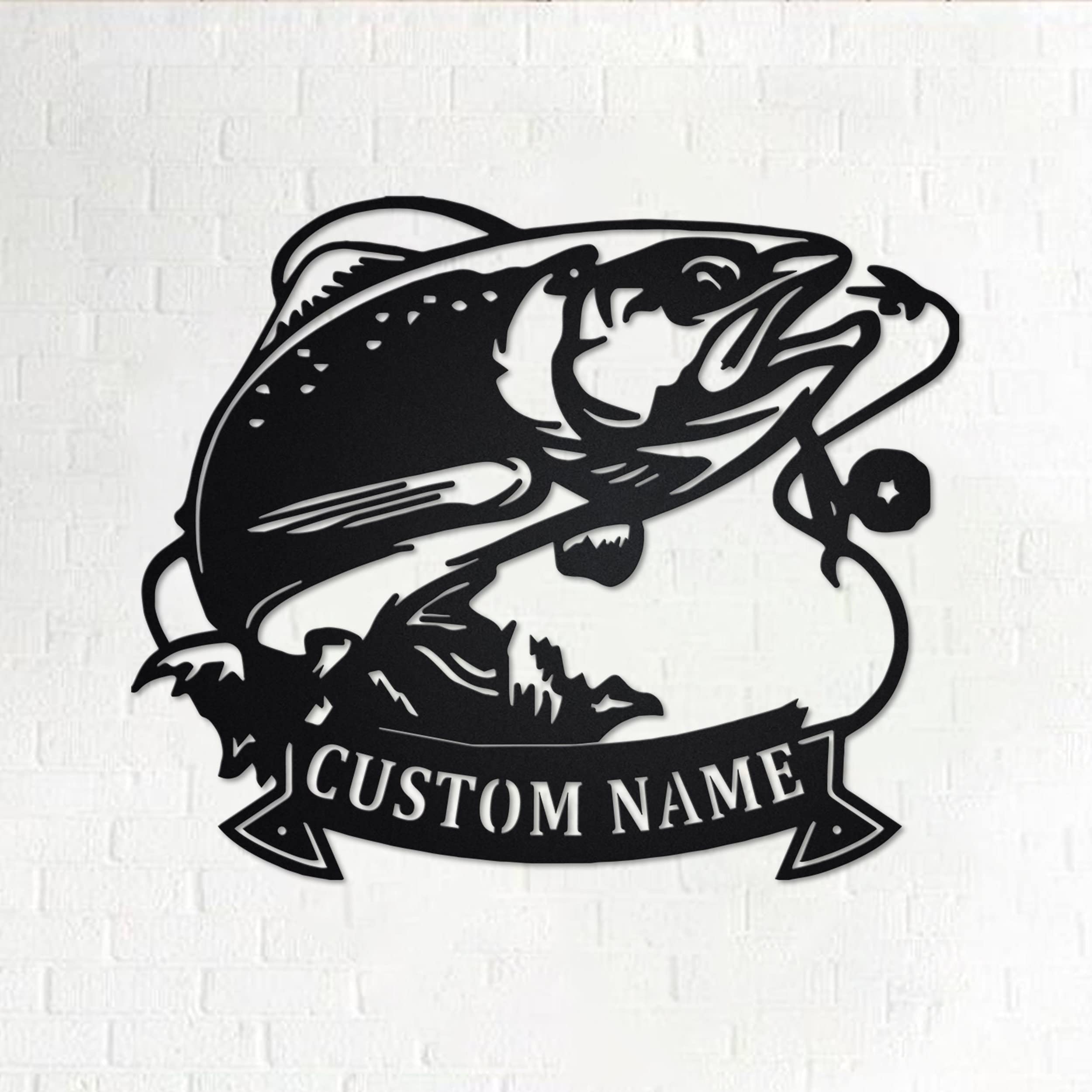 Hxgztrzii Custom Trout Fishing Metal Wall Art, Personalized Trout Fish Metal Sign Name Plaque, Trout Fishing Home Decor, Trout Fishing Theme, Fishing