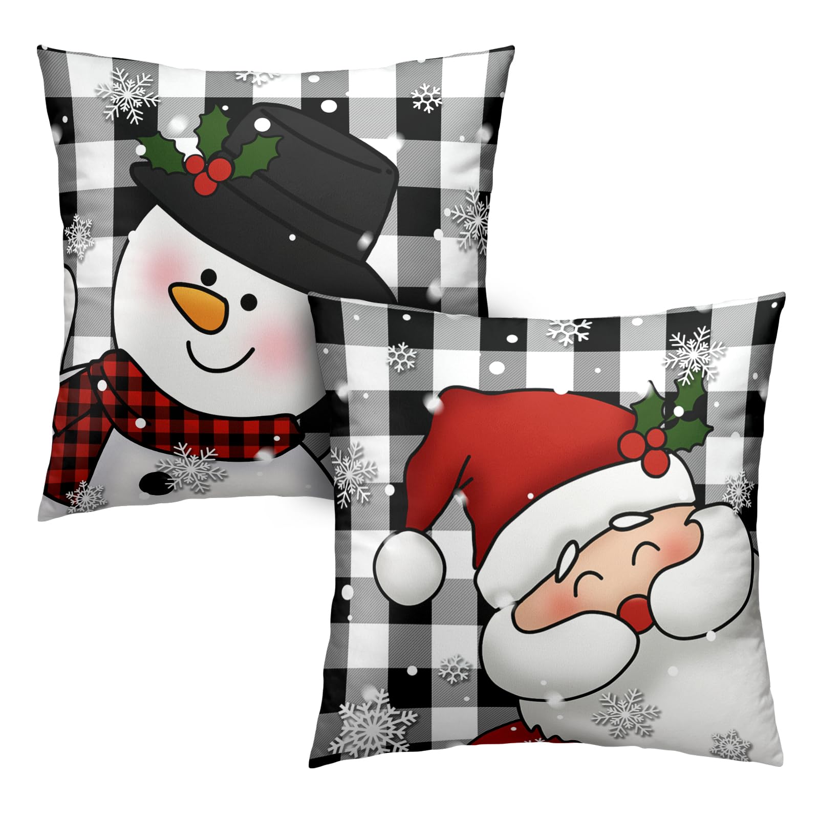Kwlegh Black and White Plaid Christmas Pillows Covers 18x18 Set of 2 Winter Snowman and Santa Claus Pillow Cases Snowflakes Cushion Cases Home Decor
