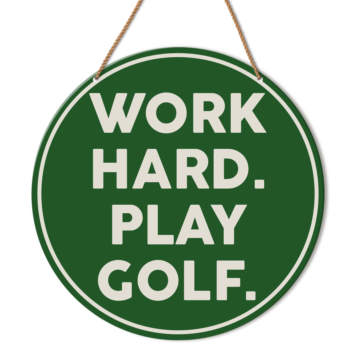 Golf Wall Decor Sign, Golf Decor for Man Cave Home Office Club Hanging Sign Decoration, Gift for Golfer Enthusiast, Work Hard Play Golf