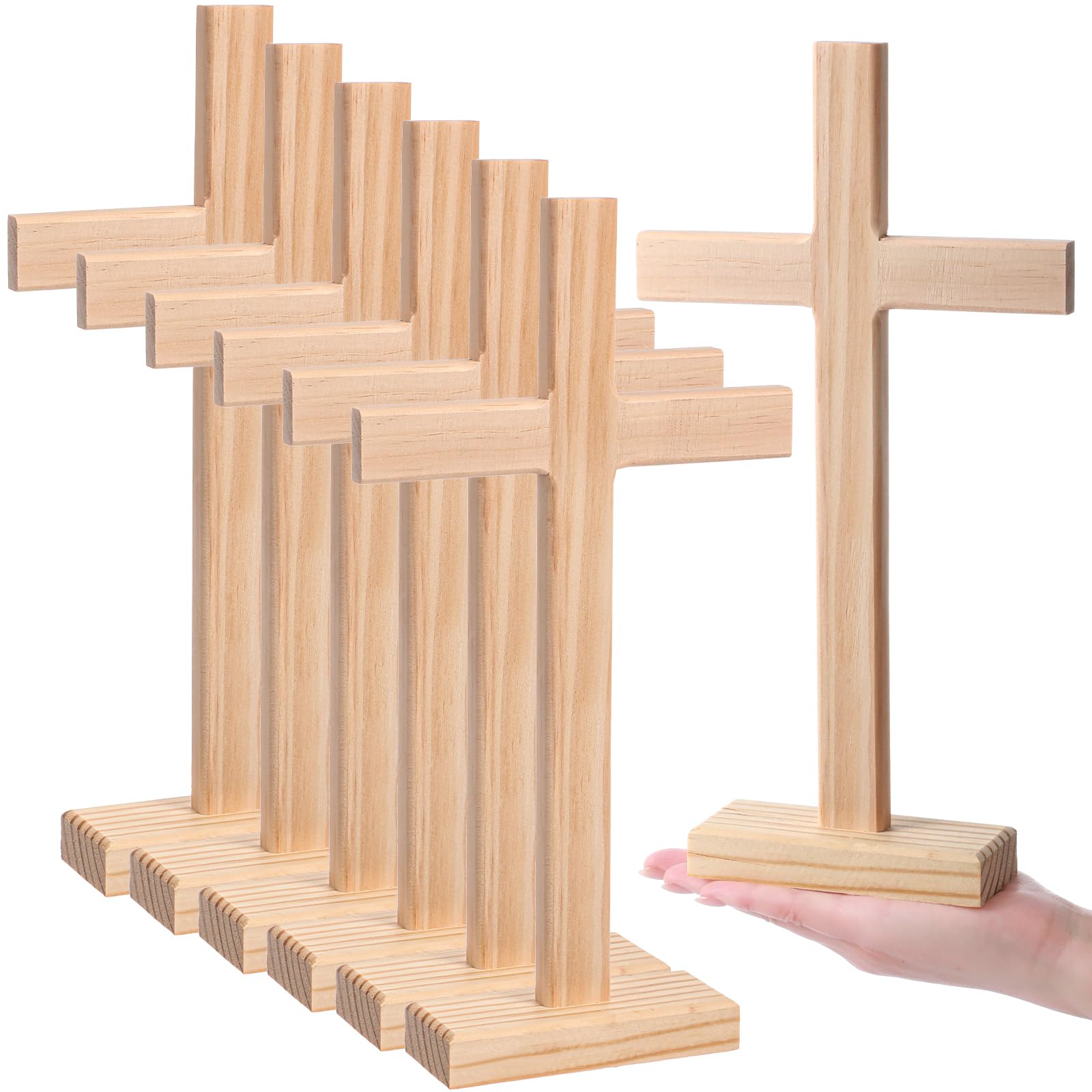 Suzile 6 Pcs 12 Inch Wooden Crosses for Craft Unfinished Wood Tabletop Cross Nativity Wood Crosses Standing Cross Centerpieces for Christmas Easter