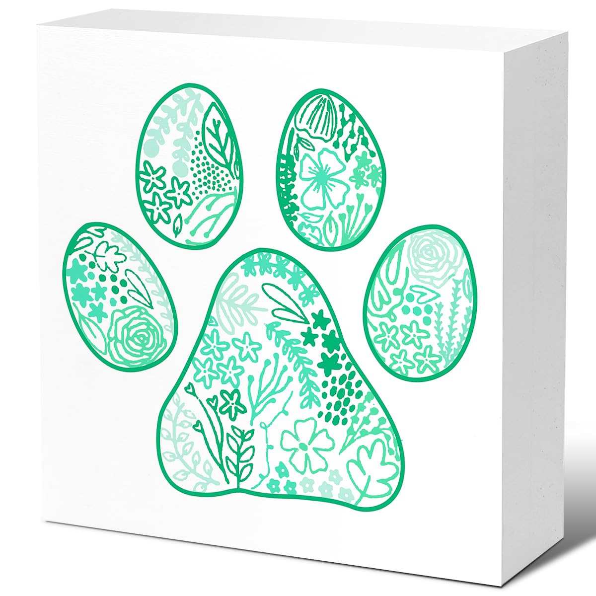 LVQHI Funny Dog Paw Plant Desk Decorations, Dog Paw Wooden Block Sign for Home Bedroom Book Shelf Desk Decor,Rustic Pet Dog Decoration for Dog Lover