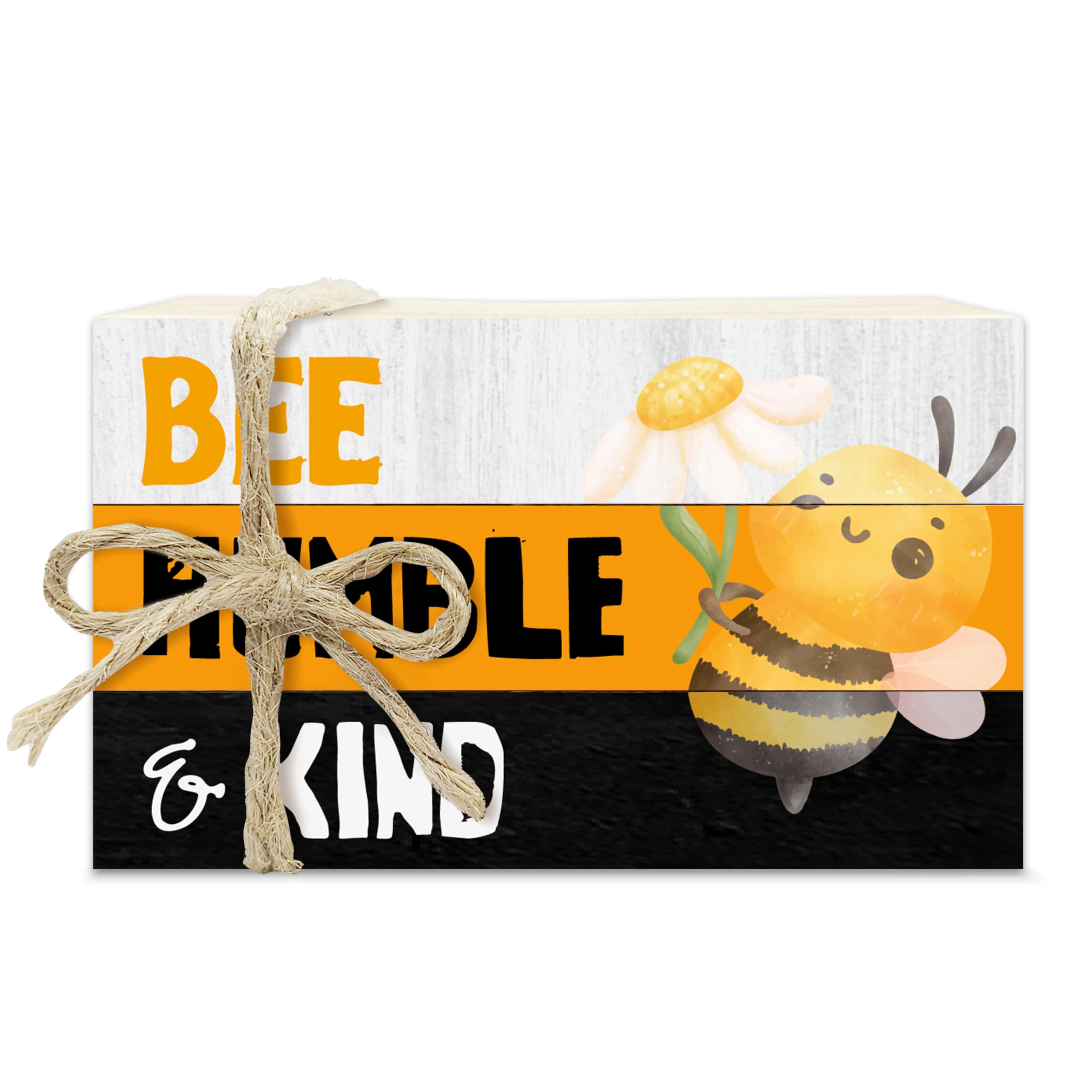 Bee Decorative Book Stack for Farmhouse, Honey Bee Tiered Tray Decor Inspirational Gifts, Bumble Bee Stacked Books Set, Bee Humble and Kind Wooden