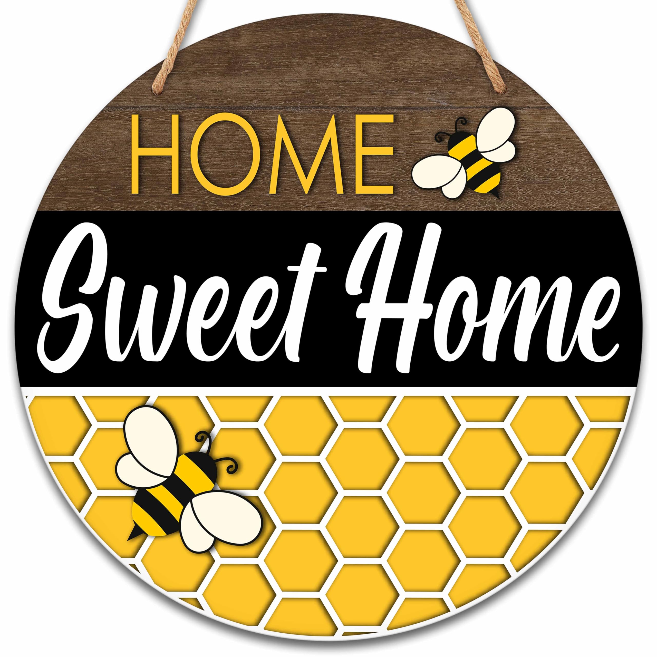 Welcome Sign for Front Door, Home Sweet Home Round Hanging Sign With Rope, Honey Bee Wall Decor For Farmhouse Home Front Door Porch, Housewarming
