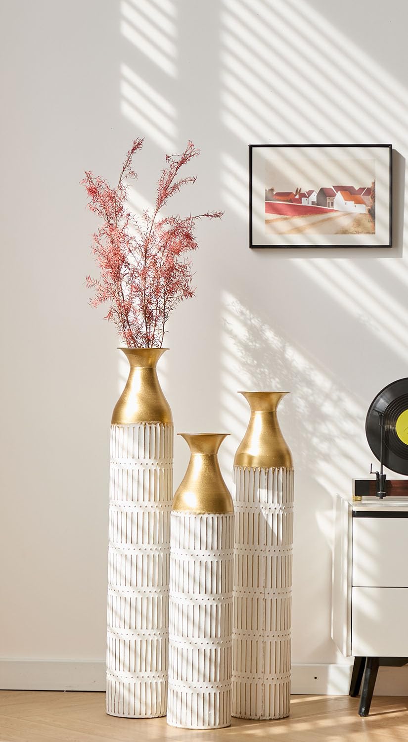[Luxurious Home Accent]: Elevate your living space with these tall vases for floor, designed to captivate with their plush, luxurious texture, dazzling details, and smooth surface; Perfect for adding a touch of sophistication and charm to any room [Durable Metal Construction]: Crafted from solid met
