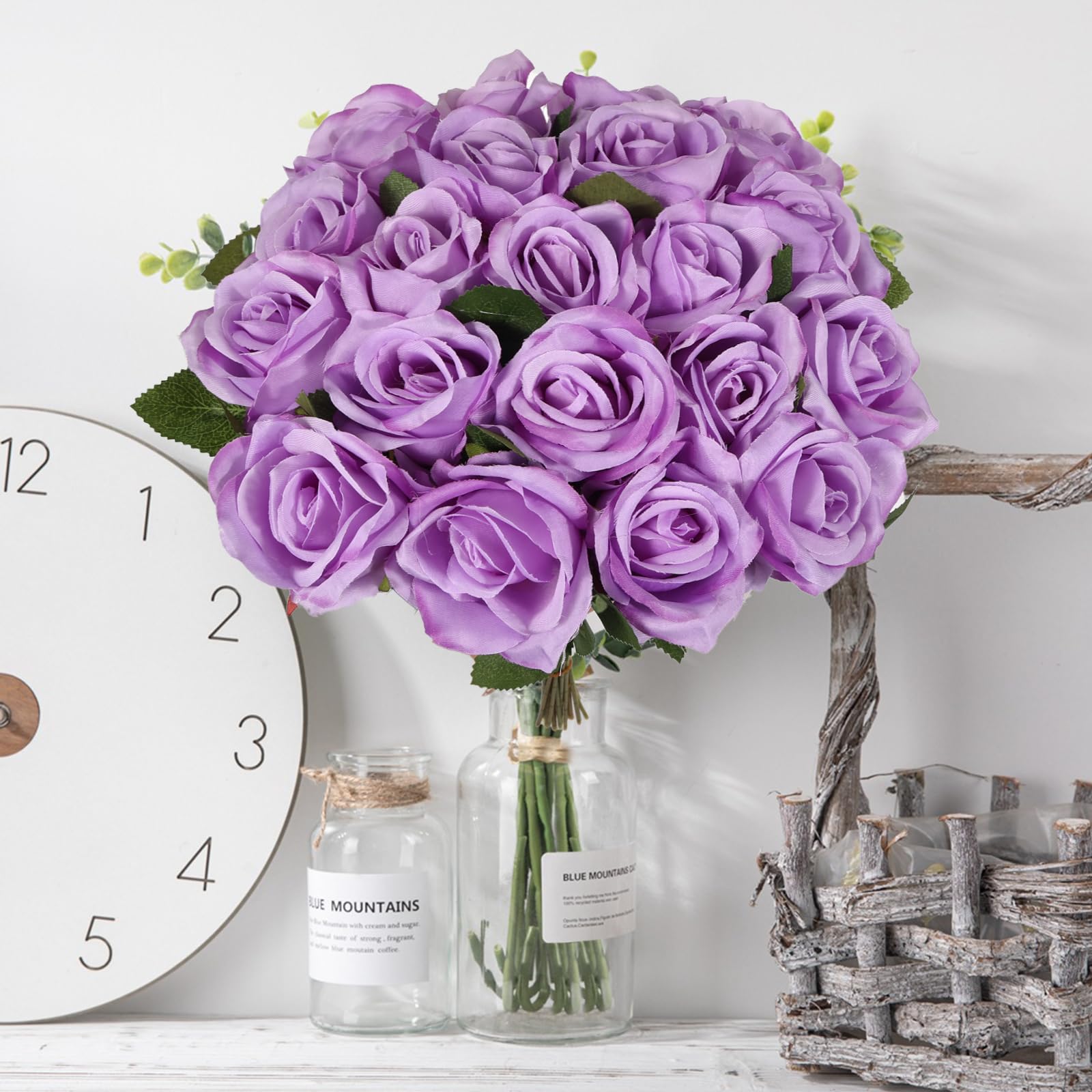 【Real Touch 20 Artificial Roses】You will receive 20 pieces of artificial purple roses with plastic stems and leaves. Our roses artificial flowers boast high-quality silk petals and leaves that are vivid and soft to the touch.This 20 set provides ample flowers for your decoration needs, whether f