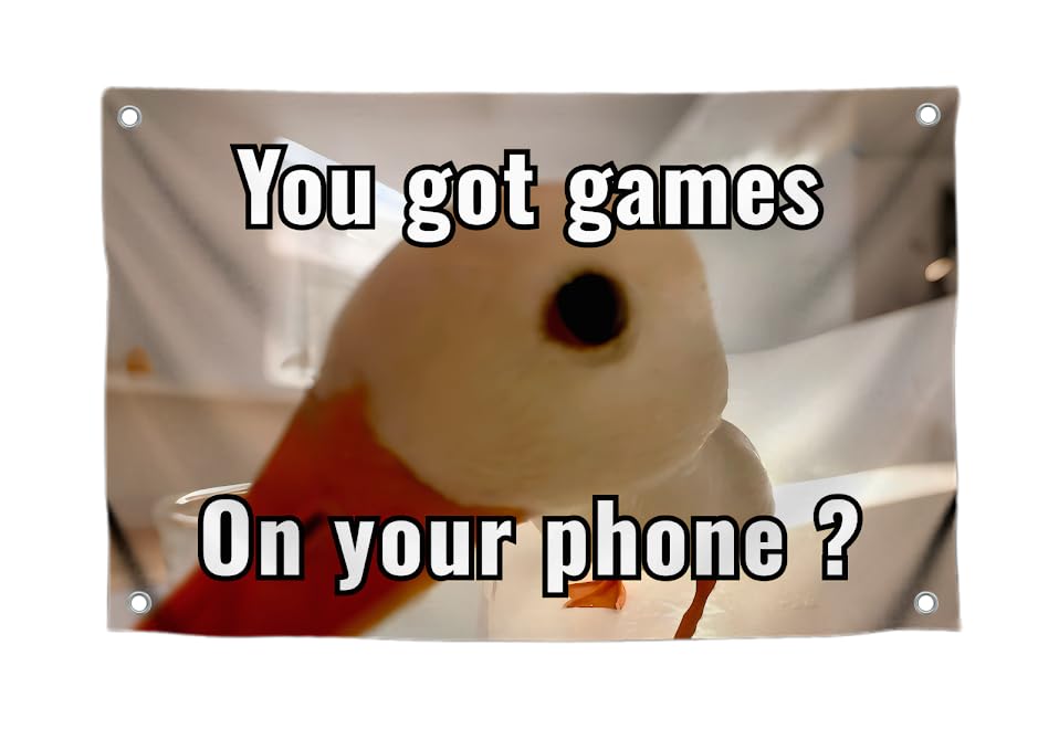 3x5 Feet Funny Polyester Duck Flag with Quote "You Got Games On Your Phone?" with Four Brass Grommets - Single Sided Funny Tapestry Wall Flags for