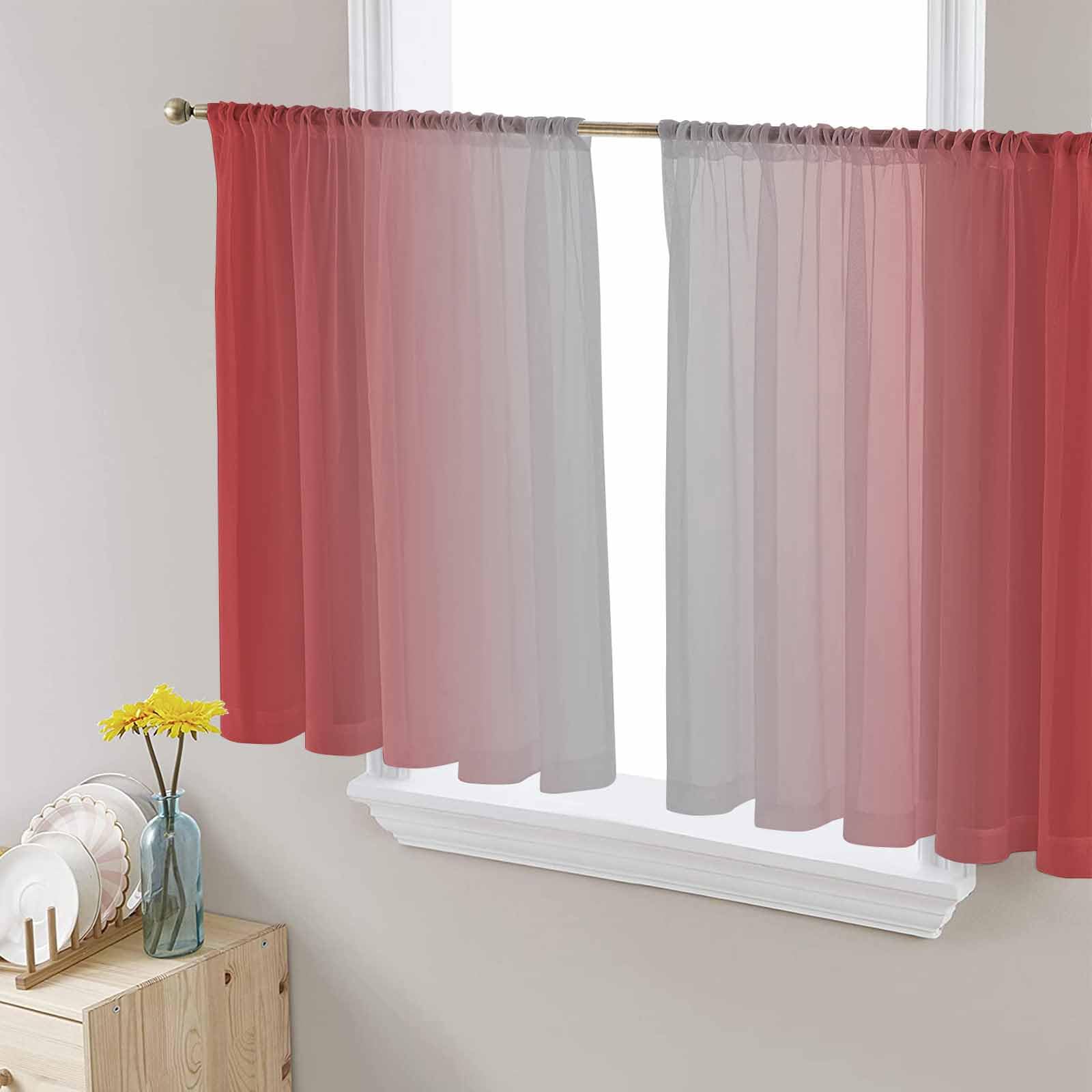 Sheer Curtains 54 Inches Long, Deep Red Gray Ombre Windows Voile Curtain for Bedroom/Living Room, Christmas Red Gradient Elegant Light Filtering