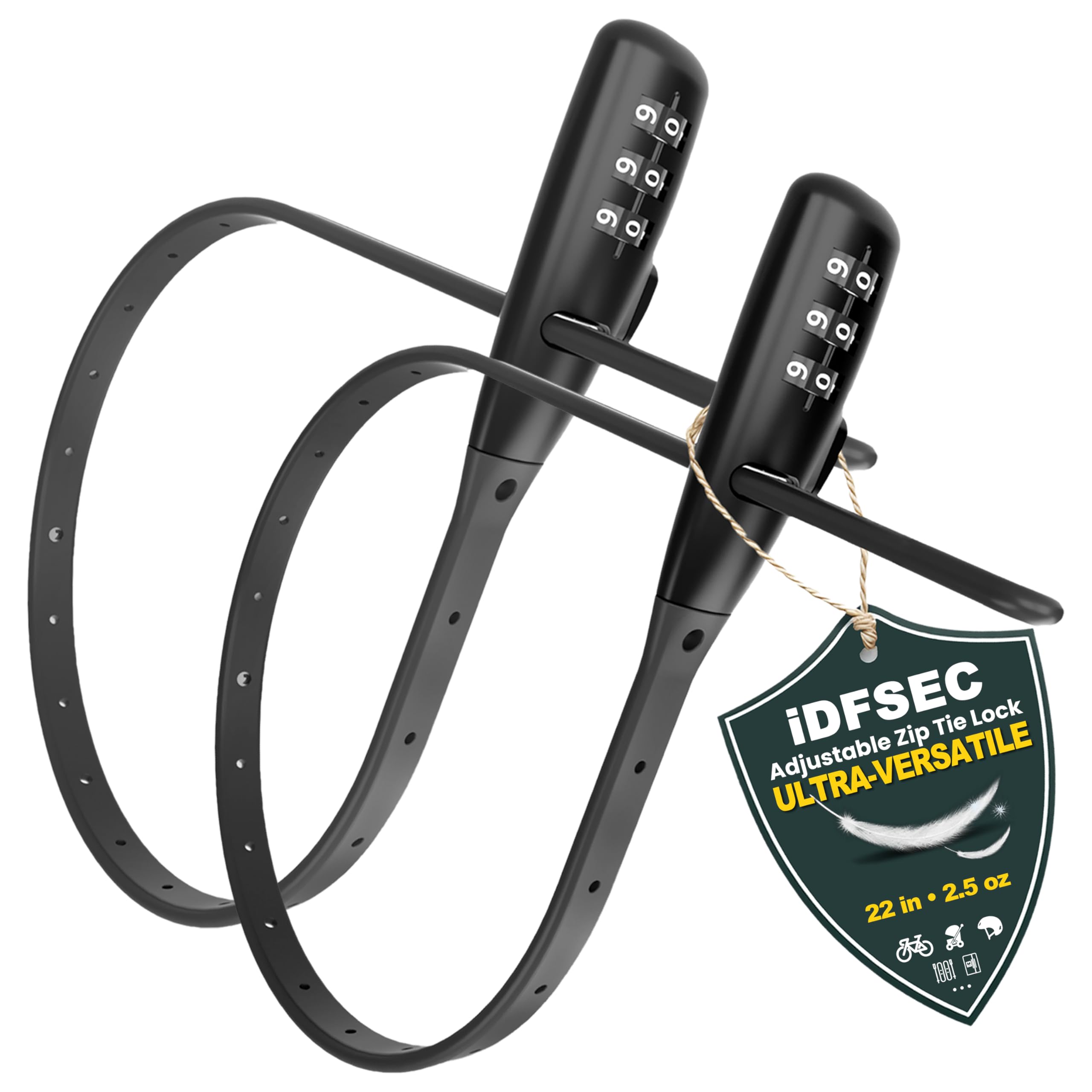 MULTIFUNCTIONAL SECURITY LOCK - iDFSEC Zip Tie Lock integrates multiple functions. It is both an adjustable cable lock and comes with a combination lock function , making it suitable for the short-term security protection of various items such as bicycles, helmets, and luggage. Thanks to its flexibl