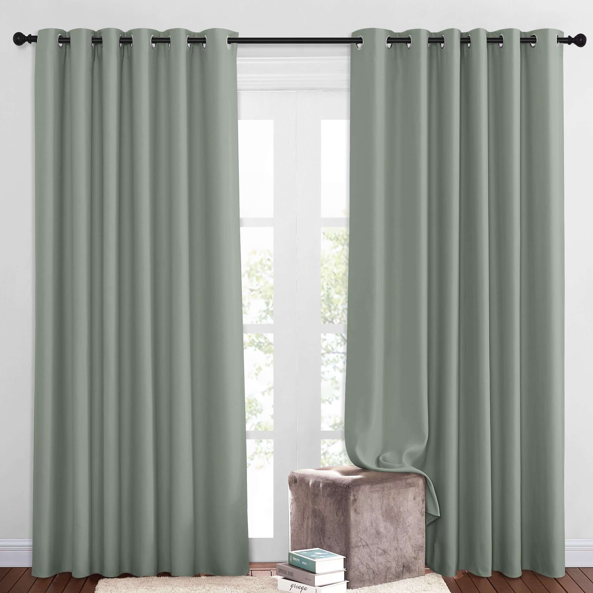 NICETOWN Room Darkening Patio Curtains for Windows 84 inch Length - Solid Thermal Insulated Grommet Light Reducing Panels Window Treatment for Living