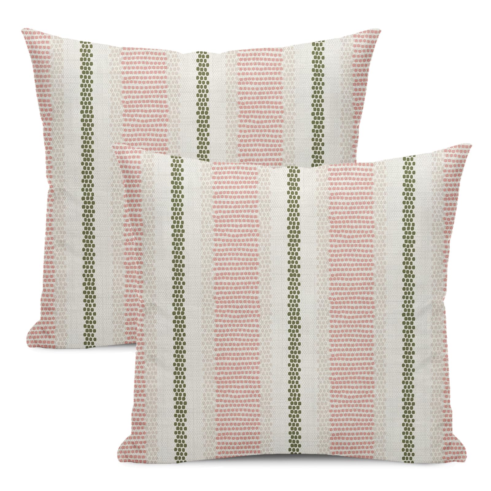 DAFENA Pink Sage Green Pillow Covers 18x18 Inch 2 Pcs Boho Preppy Polka Dots Striped Decor Throw Pillows Modern Geometric Outdoor Farmhouse Decoration