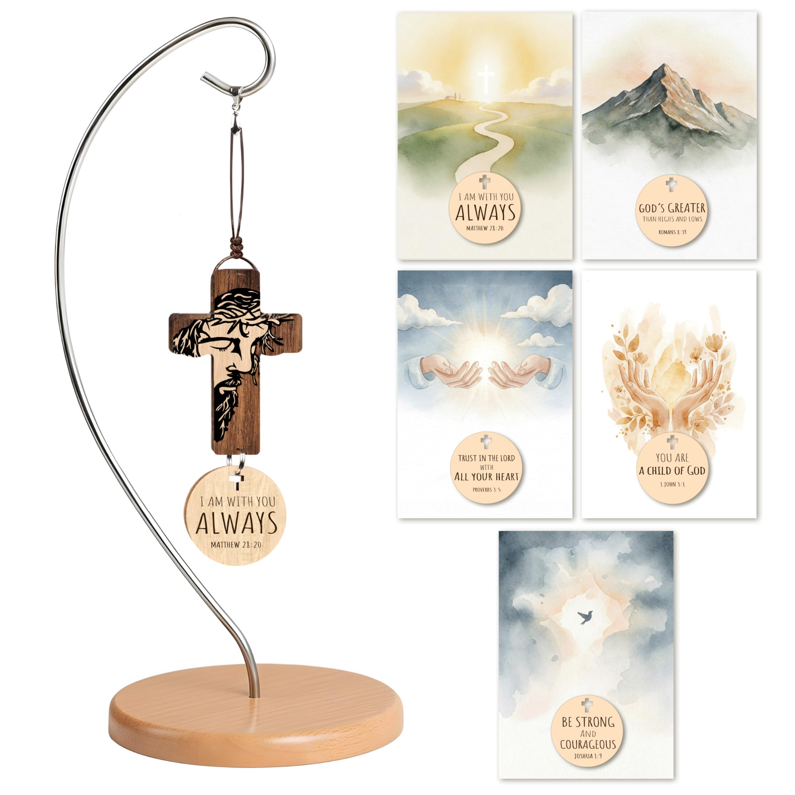 ✝️ PREMIUM WOOD CROSS DECOR – Handcrafted wood cross with smooth finish and stable base, a decorative cross that works as standing cross decor or cross wooden accent in any christian house decor. 📖 DAILY BIBLE VERSE TAP FEATURE – Tap the cross to access a new Bible verse each day, turning