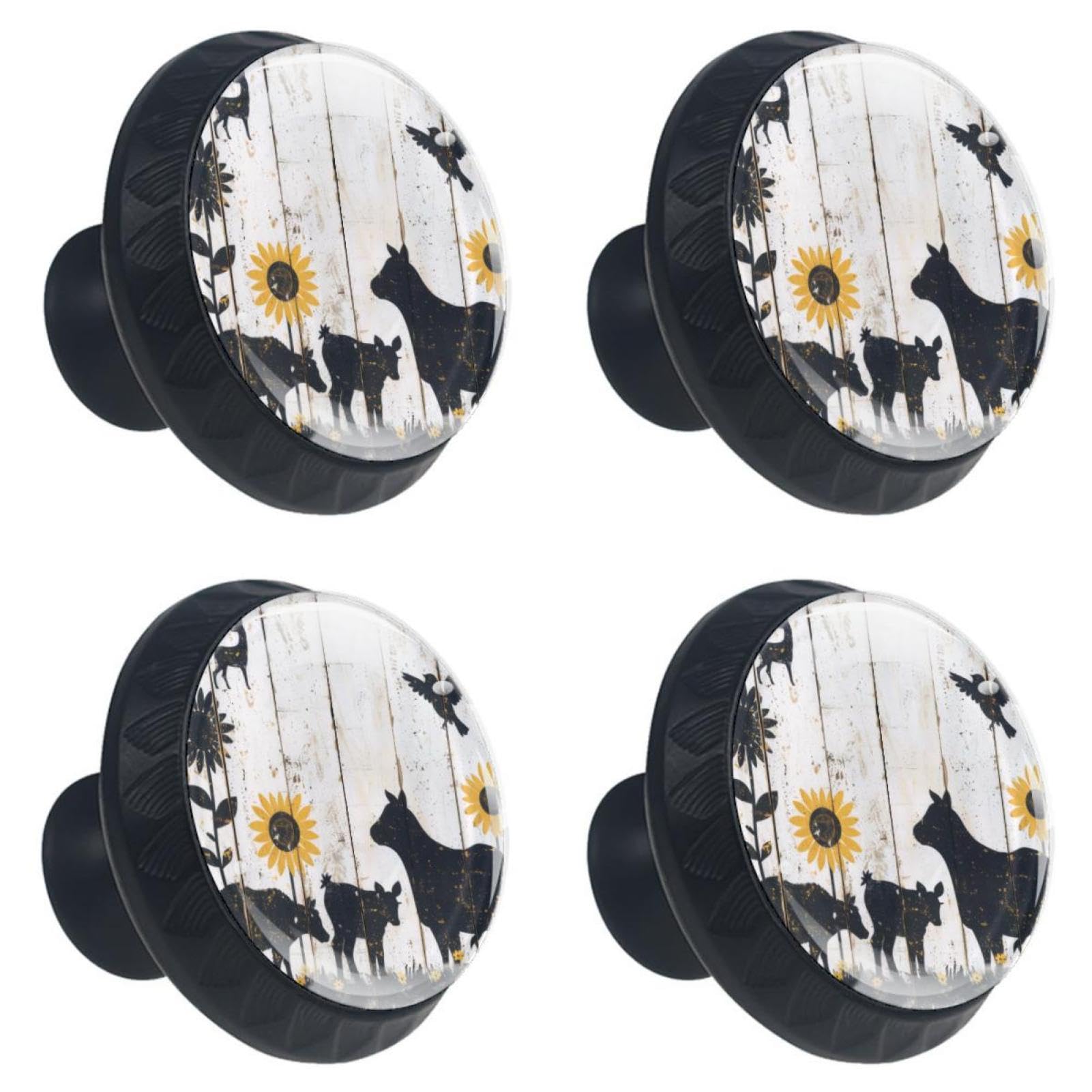 NEWzone 4 Pack Black Cabinet Knobs, Farm Cow Silhouette Rustic Plank Dresser Knobs Drawer Knobs Kitchen Cabinet Knobs, Cabinet Hardware Dresser Drawer