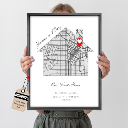 W WHEEL UP Our First Home Map Print, Personalized New House or Heart Shape, Custom Housewarming Gift for Home, Wedding, Anniversary, Valentine‘s Day (