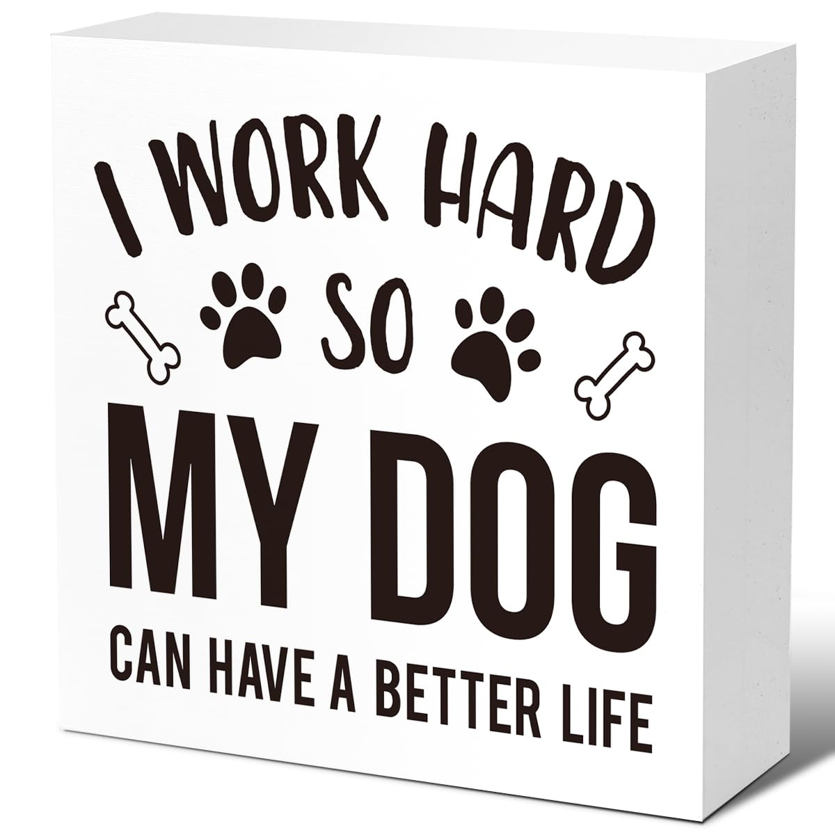LVQHI Funny Wood Block Sign - I Work Hard So My Dog Can Have a Better Life - Rustic Dog Lover Gift, 5"x5"