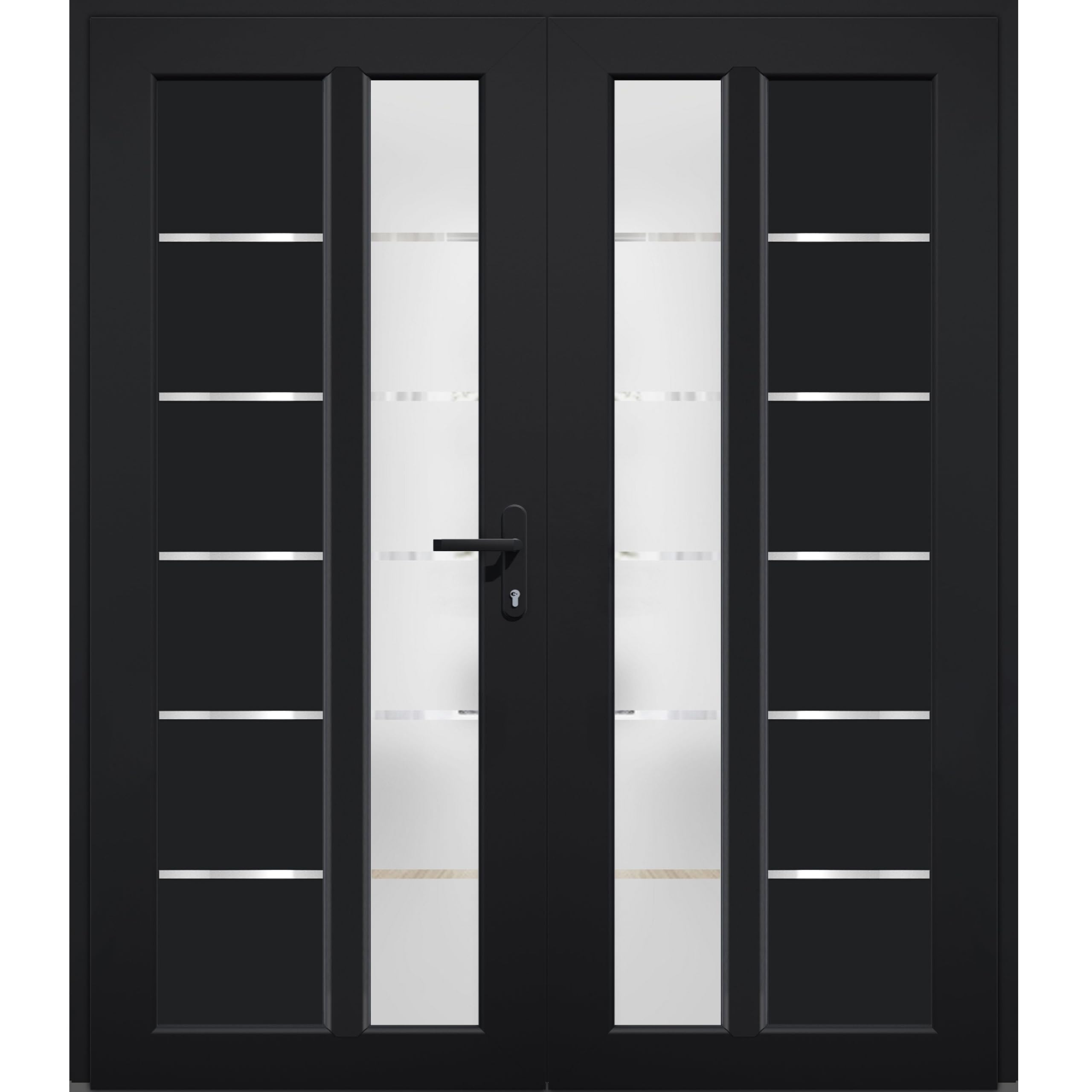 VDOMDOORS Front Exterior Prehung Metal-Plastic Double Doors/MANUX 8088 Matte Black/Residential Doors Entrance Patio Garage 72 x 80