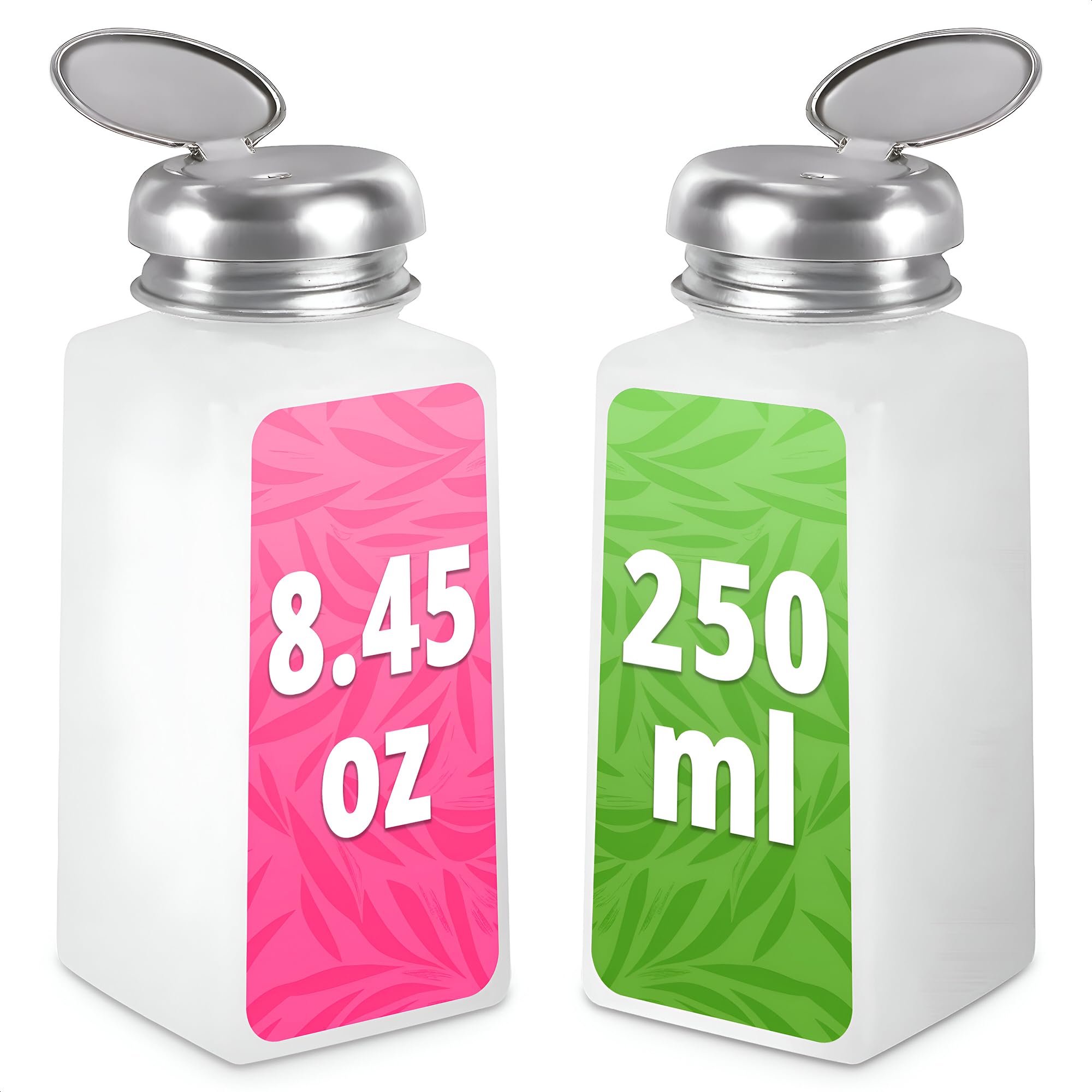2 Pcs Acetone Dispenser - 250ml Acetone Pump Dispenser Set, Easy-to-Use Plastic Bottles 5.1 x 1.96 for Any Liquid, Good for Face Cleanser, Toner, Nail