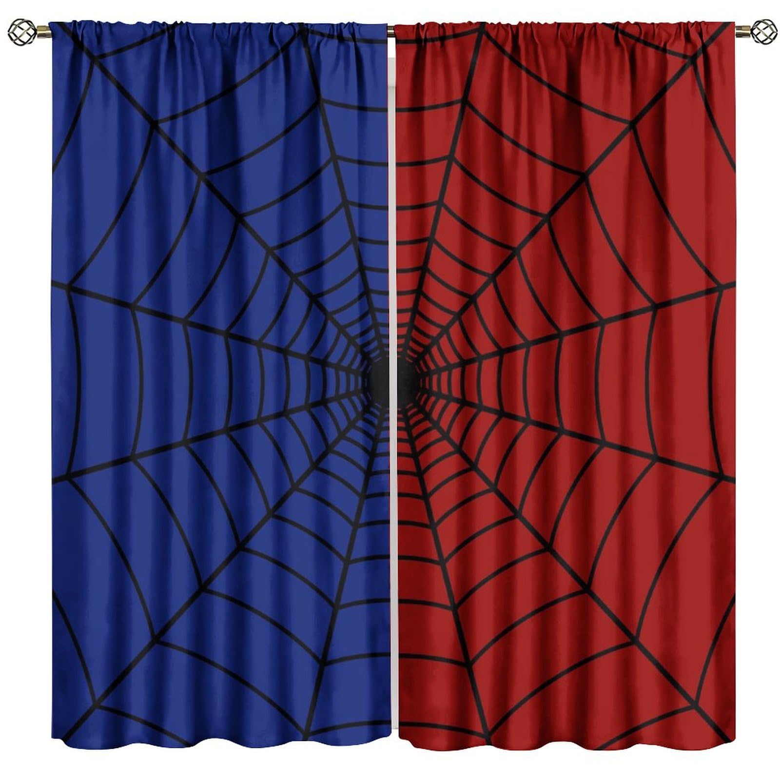 SHElifestyle Super Hero Spider Web Window Curtains for Kids, Black Spiderweb Window Treatments Kids Red Blue Curtain Drapes for Boys Girls Baby