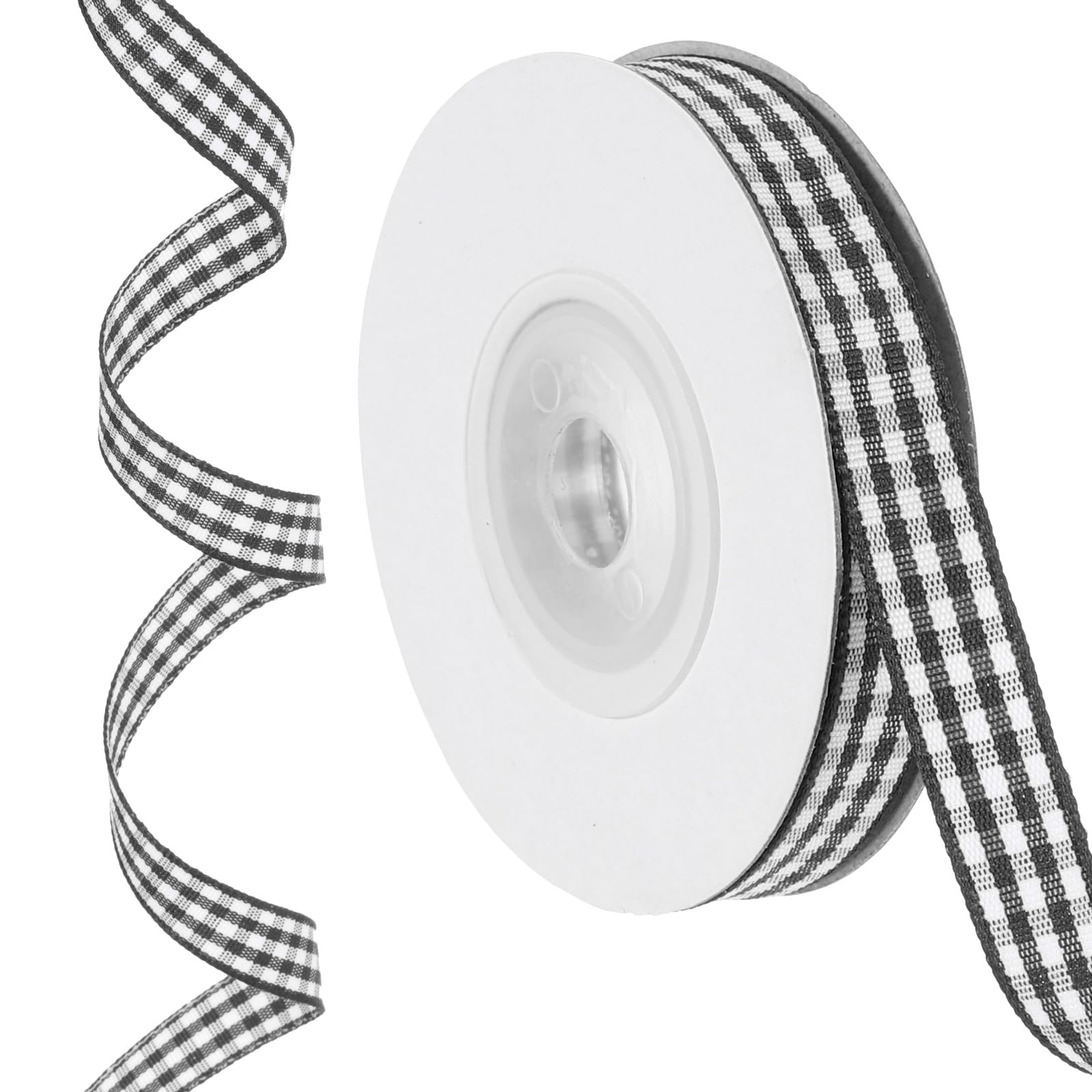 PATIKIL 10 Yards x 0.4" Plaid Ribbon, Black and White Gingham Ribbon Gift Wrapping Ribbon for Thanksgiving Bow Wreath Craft Birthday Wedding