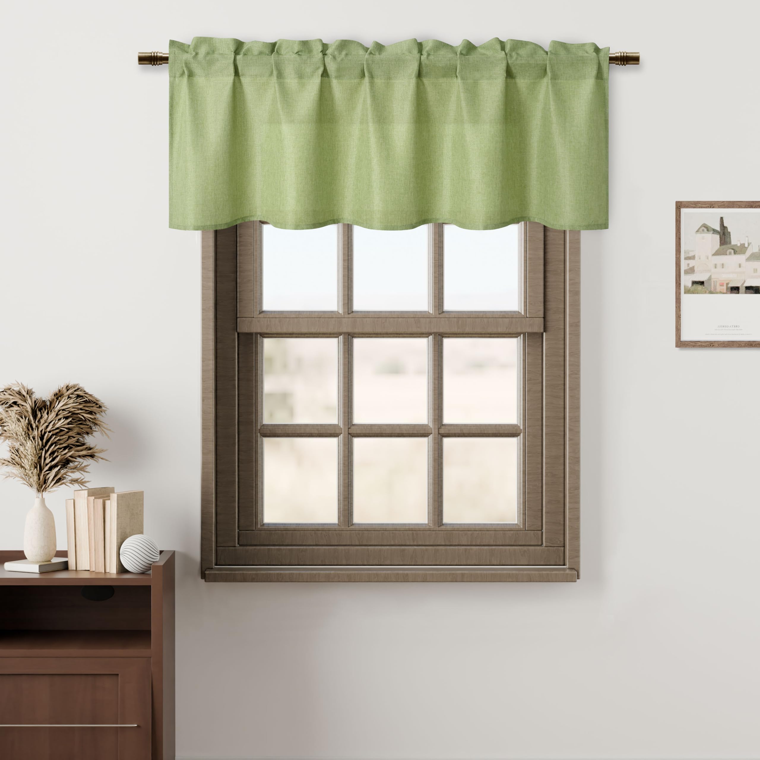 Hiasan Farmhouse Valance Curtains Faux Linen Light Filtering Rod Pocket Window Valance for Kitchen Living Room Bedroom Basement, Green, 42 x 18 Inches