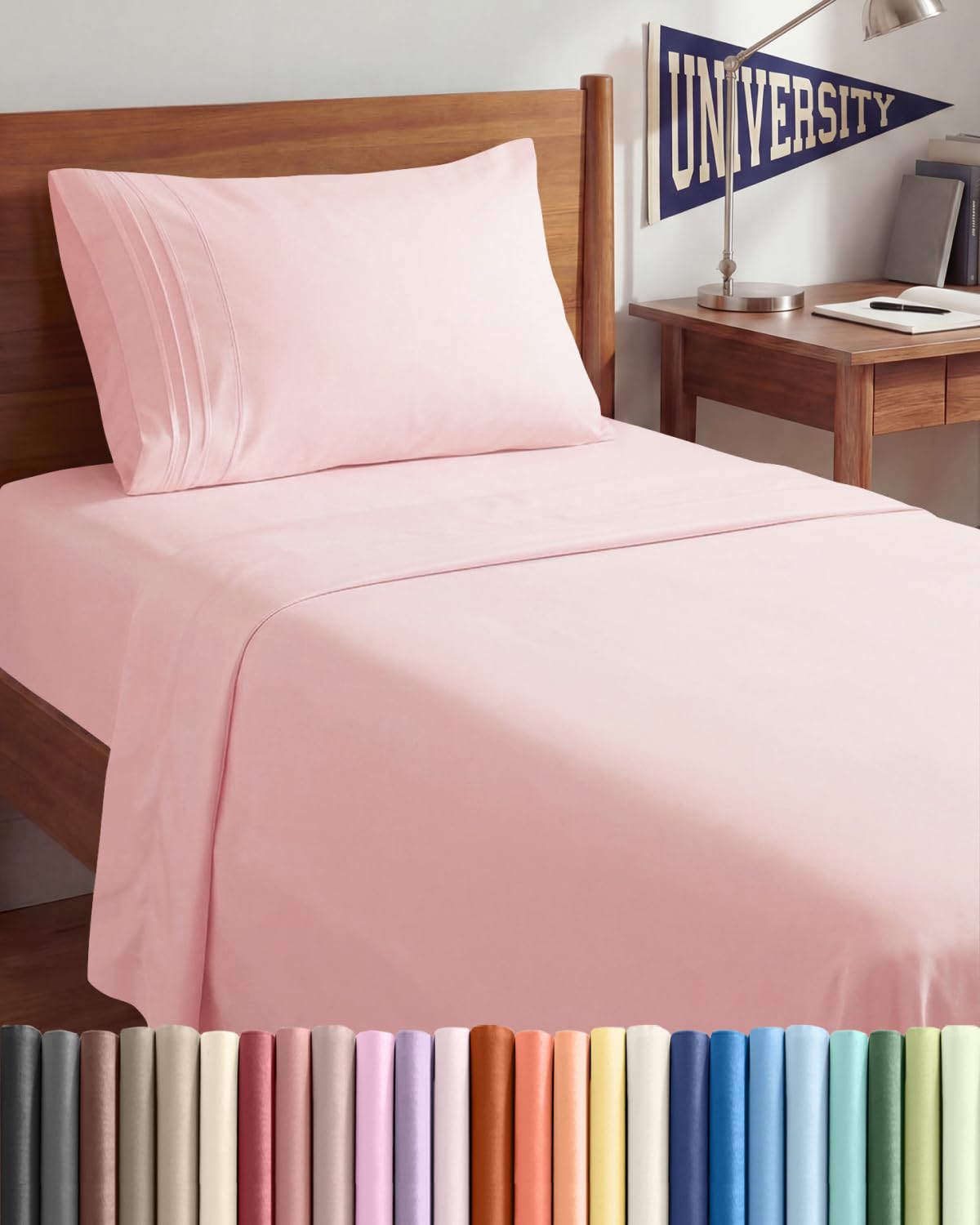 3 PIECE BED SHEET SET: 1 pillow case and flat sheet and fitted sheet. Flat Sheet (66"x 102") Fitted Sheet (39"x 80") 1 Pillow Case (20”x 30”) - a comfy upgrade for Adults, Kids, Teens, Boys & Girls. DEEP POCKETS/ EASY FIT: They fit mattresses up to around 16 inches deep. If your mattress is smal