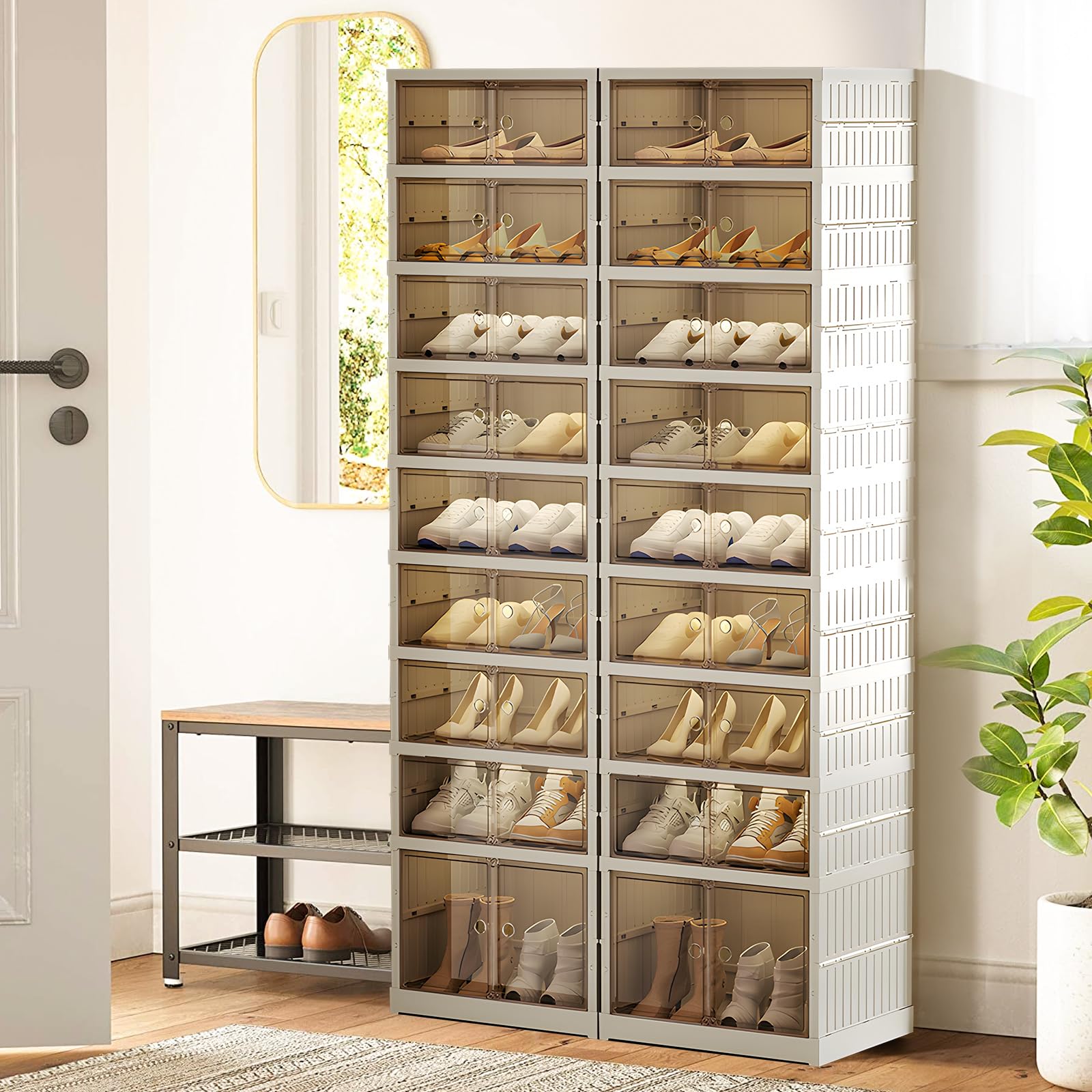 ELPHECO 9 Tier 36 Pairs Large Shoe Rack Organizer - Foldable Sneaker Cabinet Bins, Stackable Shoe Storage Shelf, Collapsible Shoe Cabinet with Double