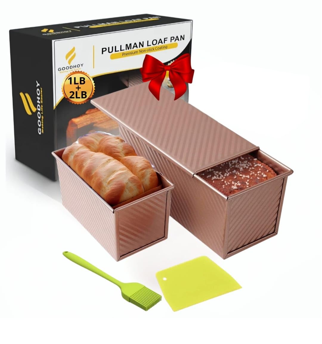 Goodhoy 1lb+2lb set Nonstick Pullman Loaf Pan With Lid For Homemade Bread Carbon Steel Sandwich Bread Baking Mold With Sliding Lid Durable Toast Box