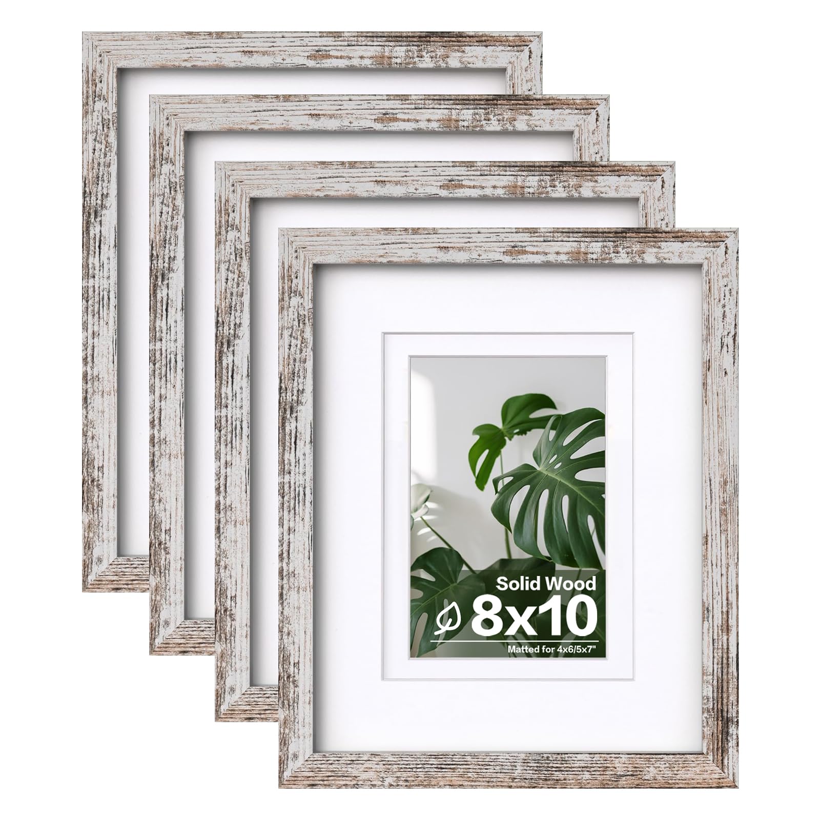 Egofine 8x10 Picture Frames Set of 4, Made of Solid Wood Covered by Plexiglass 4x6 and 5x7 with Mat or 8x10 without Mat, for Table Top Display and