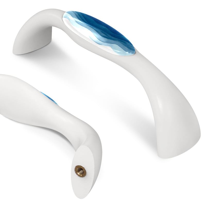 LORVIES 4 Pack 5.6" Marble Decorative Cabinet Knobs, ABS Glass Wavy Long White, Drawer Dresser Closet Door Handles Pulls for Home Kitchen Bedroom (