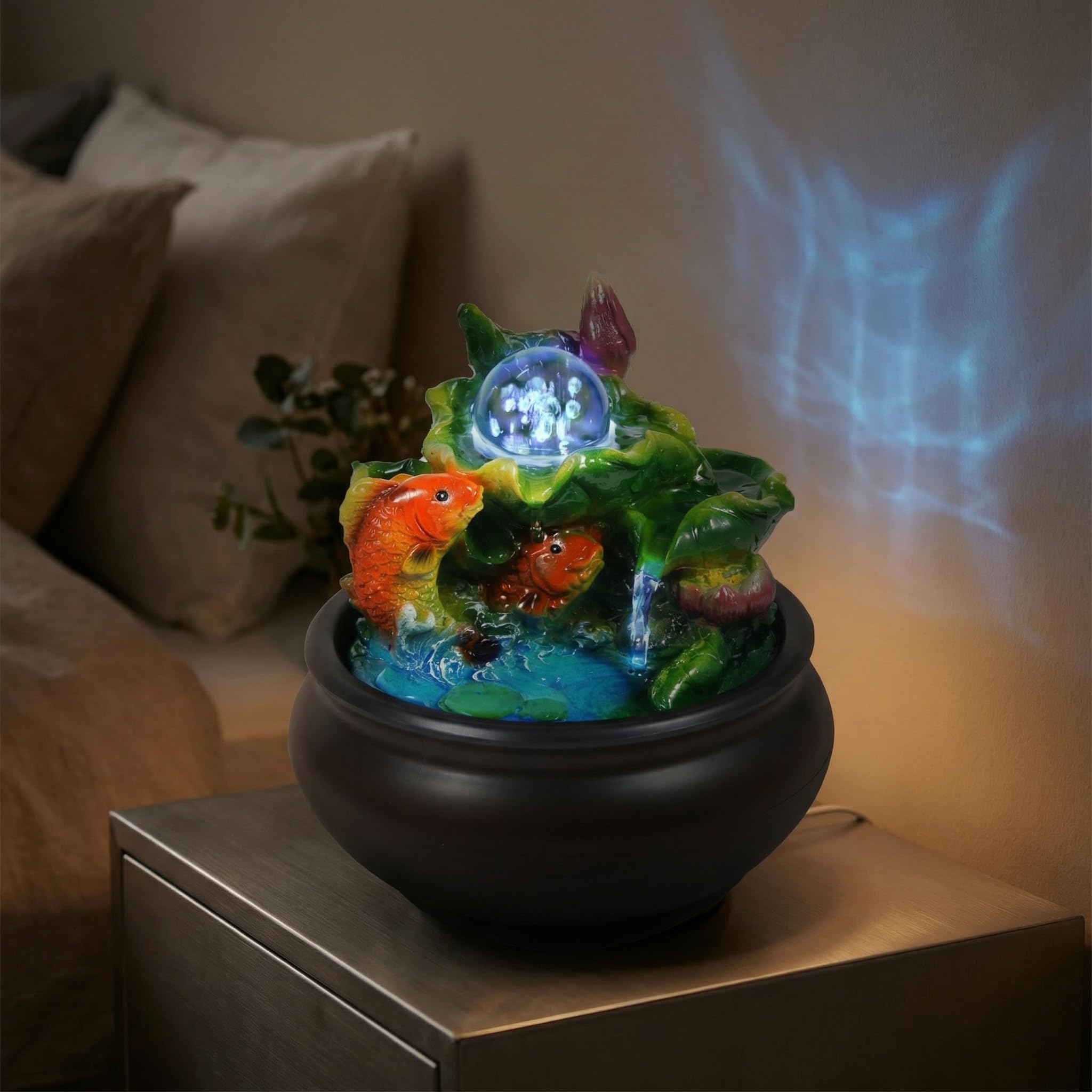 Fish Indoor Relaxation Desktop Fountains Humidifying Tabletop Water Fountain Indoor Office Decorations Waterfall Fountain for Office Living Room