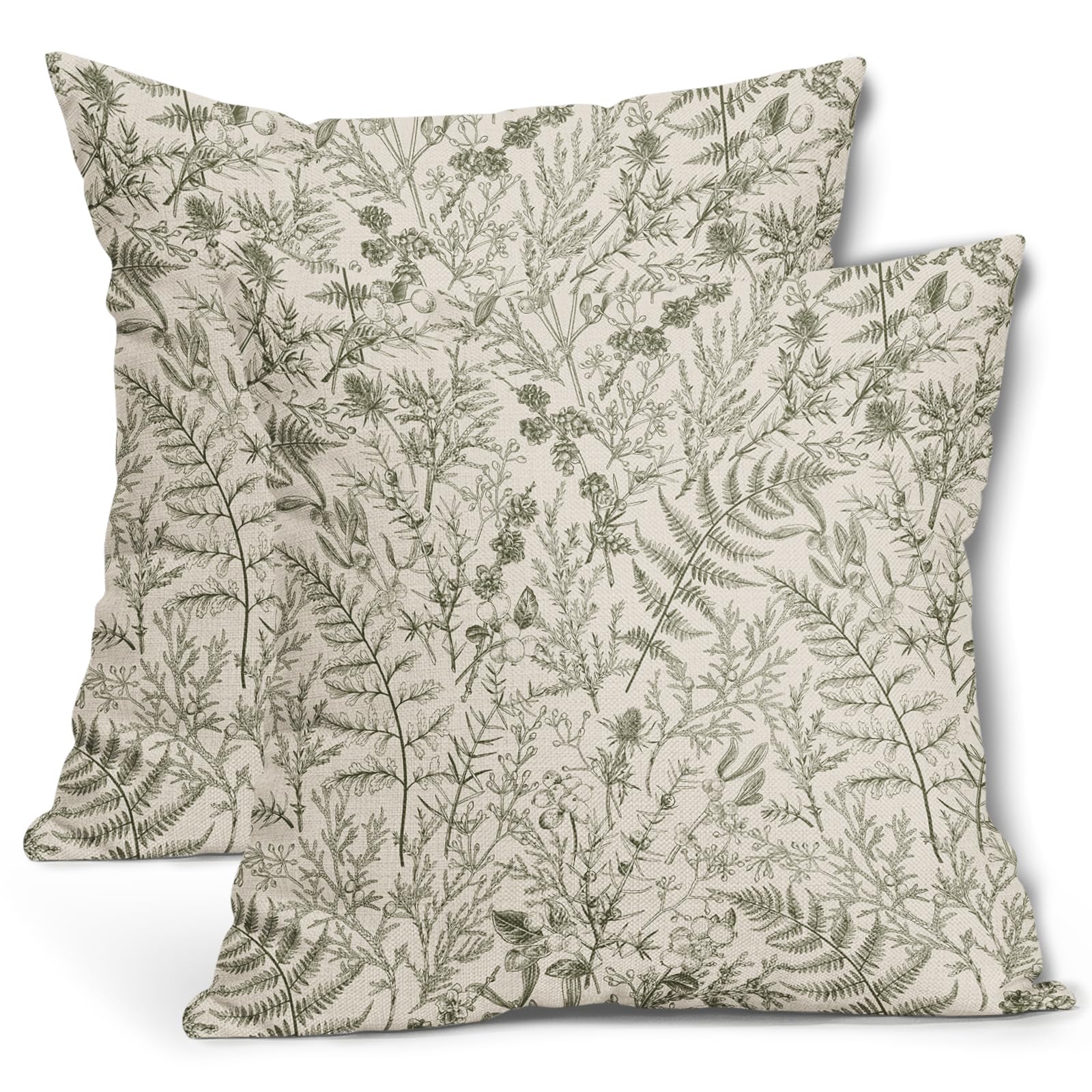 aportt Olive Green Fern Leaves Pillow Covers 22x22 Inch Plant Leaf Floral Pine Decorative Pillow Cases Vintage Botanical Spring Summer Throw Pillows