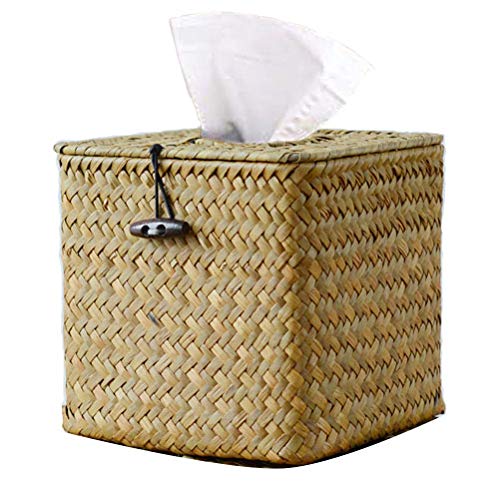 KiaoTime Retro Vintage Natural Wicker Tissue Box Cover Holder, Rustic Woven Refillable Tissue Paper Cube Box Cover Case, Decorative Tissue & Napkin