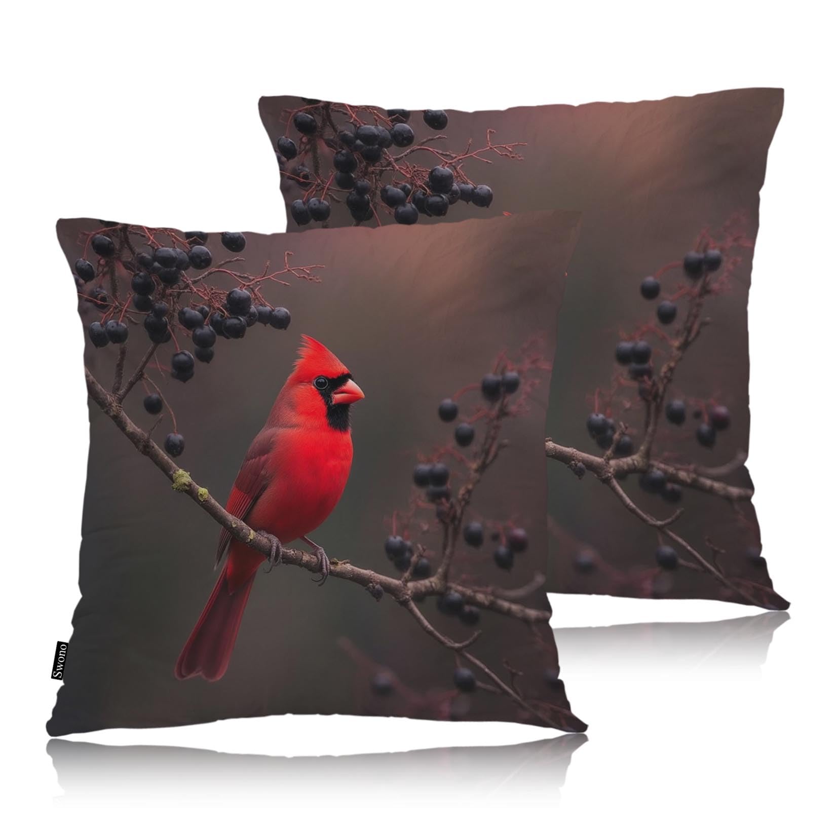 Swono 18"X18" Throw Pillow Covers Red Cardinal, Winter Cardinal Bird Berry Tree Boho Pillowcase Cushion Covers for Couch Bed, Square Decorative Pillow