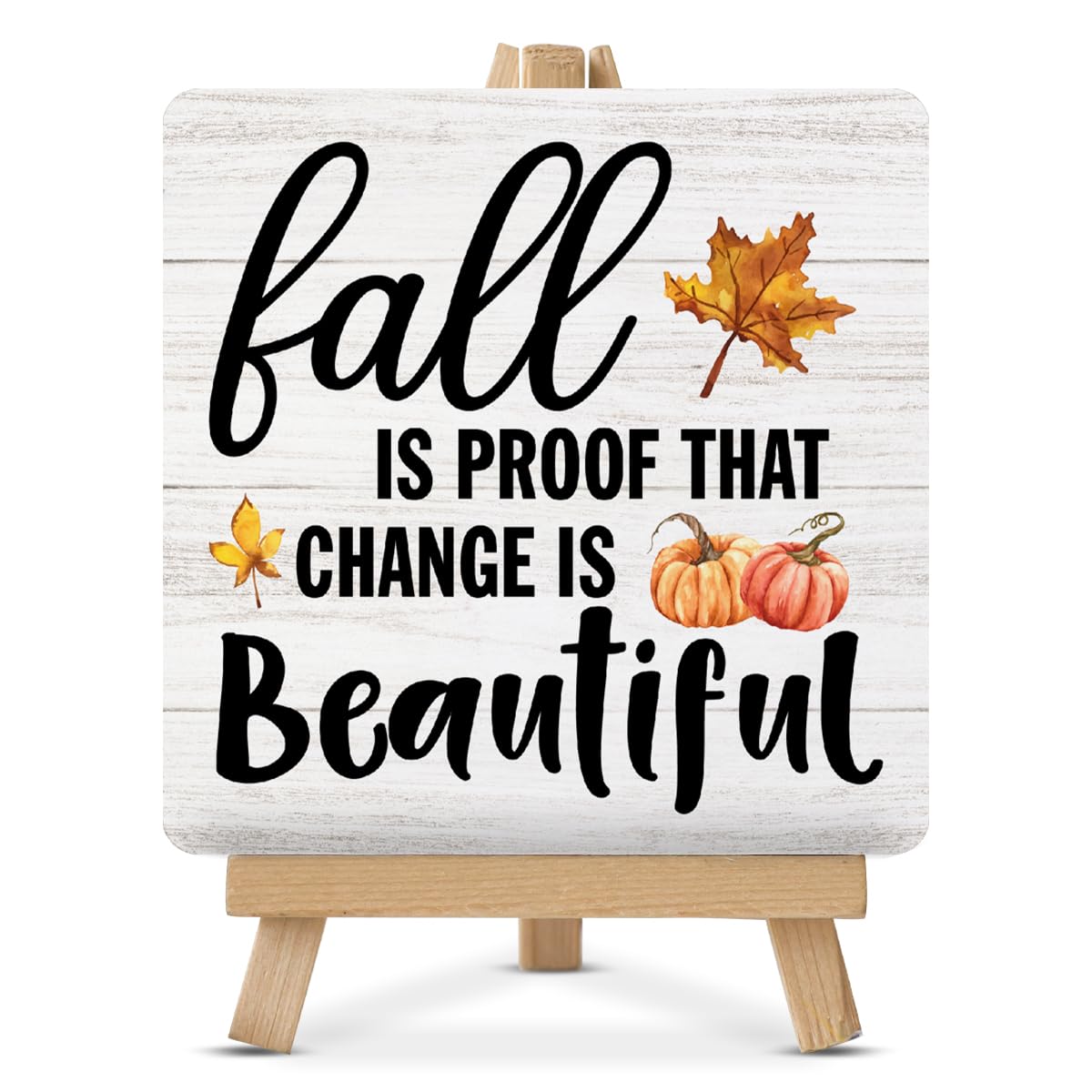 Fall Decor Fall Is Proof That Change Is Beautiful Wood Sign with Easel Autumn Decorations for Home Desk Table Shelf Tiered Tray, Fall Artwork Decor