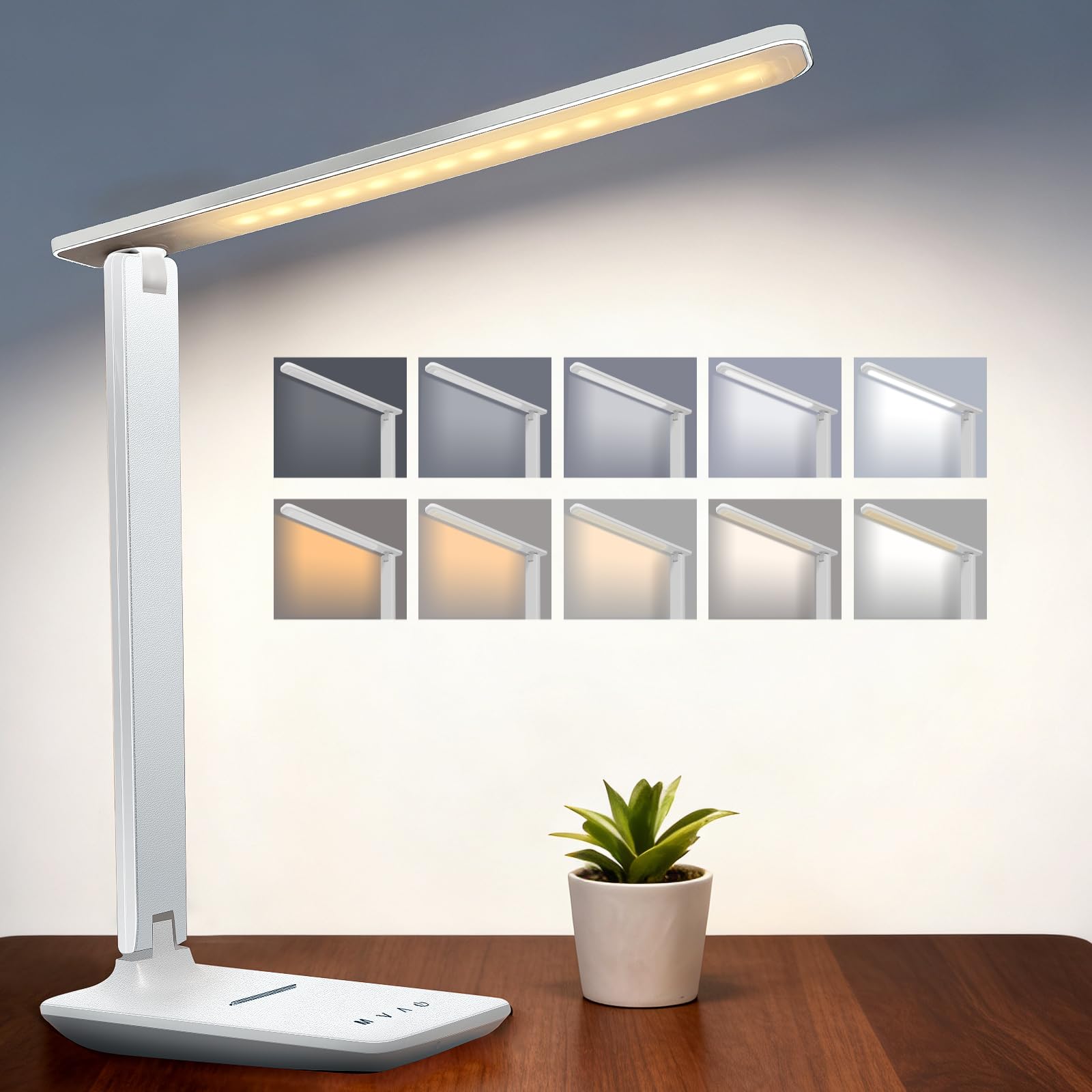 RECHARGEABLE DESK LAMP: This small desk lamp features 4000mAh rechargeable battery providing 10 hours continuous cordless lighting on single charge for extended work sessions without frequent charging. Perfect portable desk lamp for office study, home crafting, nail art, puzzle solving, and kids hom