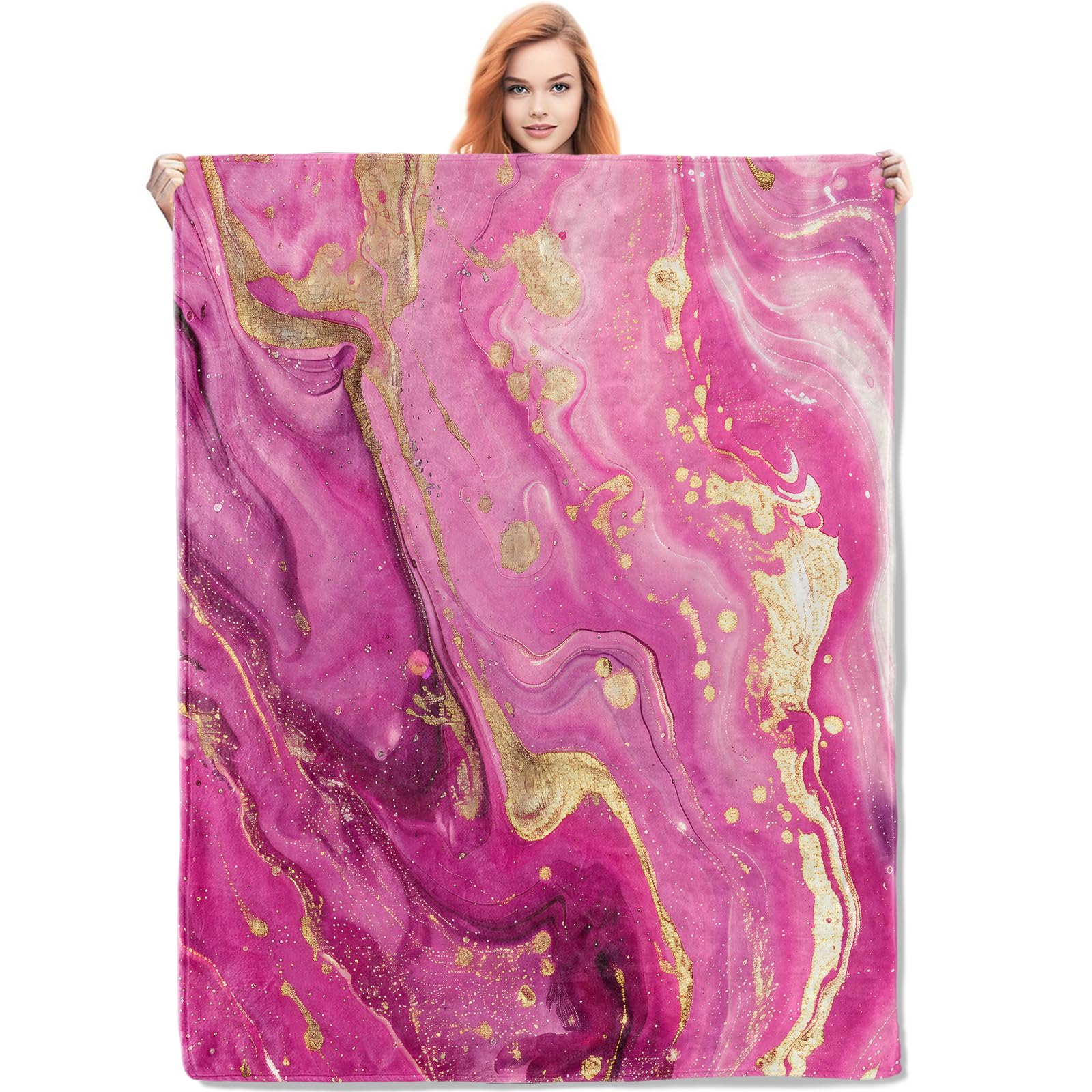VANZEV Pink Gold Marble Throw Blanket 60x80, Elegant Abstract Design Blankets for Modern Home Decor, Pink and Gold Marble Gifts for Women