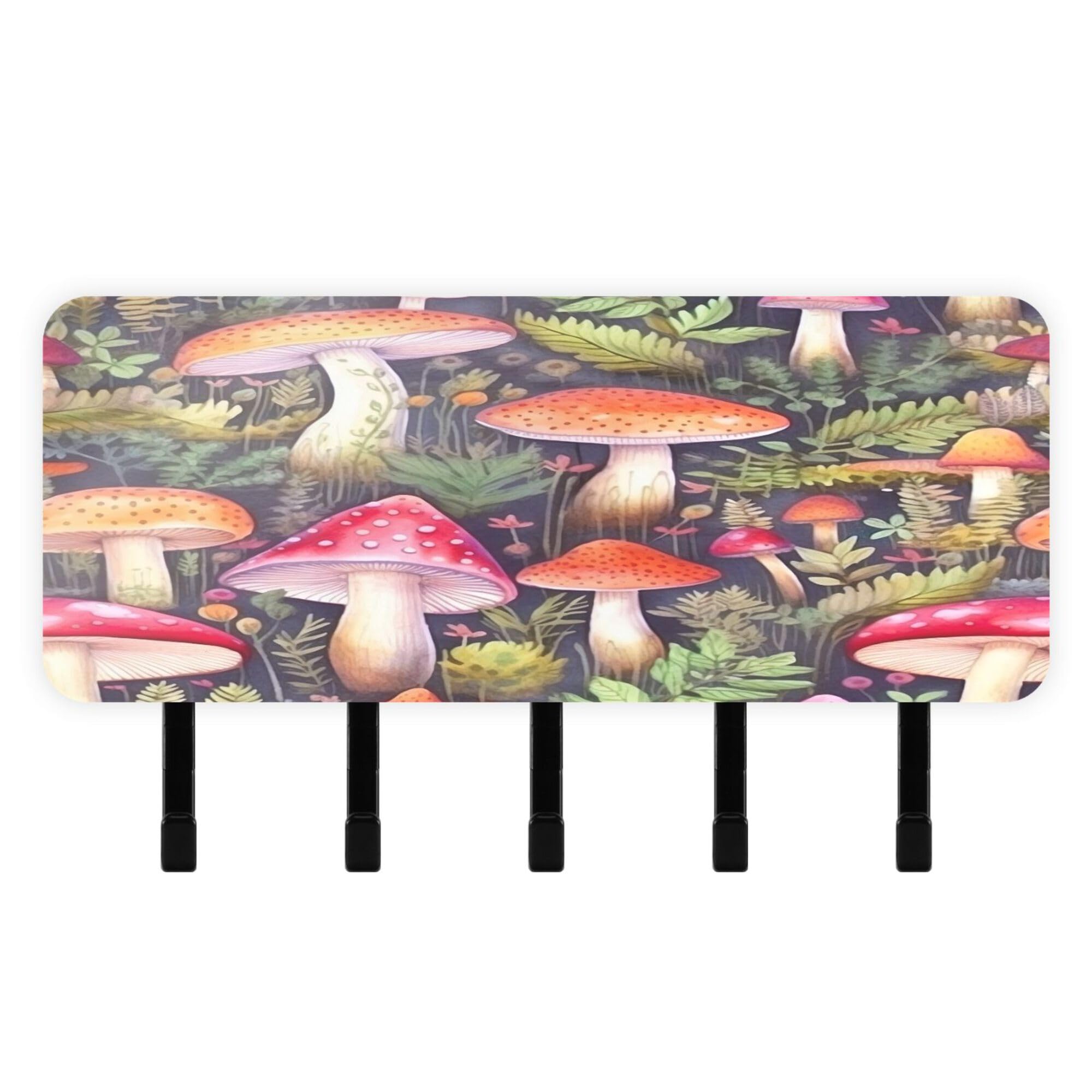 xigua Mushrooms Pattern Key Holder for Wall with Mail Organizer & 5 Key Hooks Decorative Key and Mail Holder for Hallway Kitchen Office Farmhouse