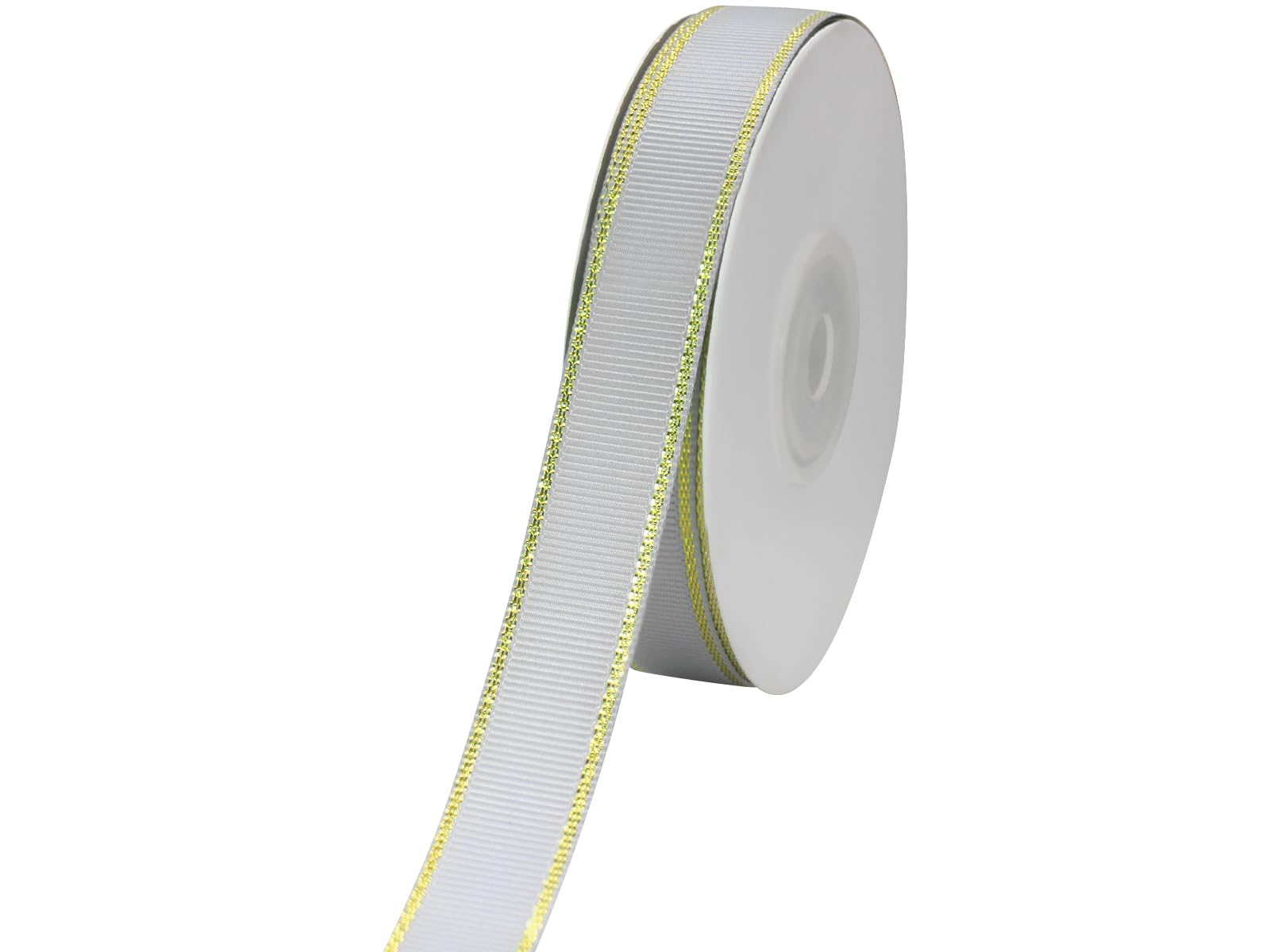 JESEP YONG 5/8 inch Gray Grosgrain Ribbon with Golden Weft Edges-20 Yards Craft Gift Wrapping Ribbon Roll for Bows-Christmas Home Decor-Wedding-Party