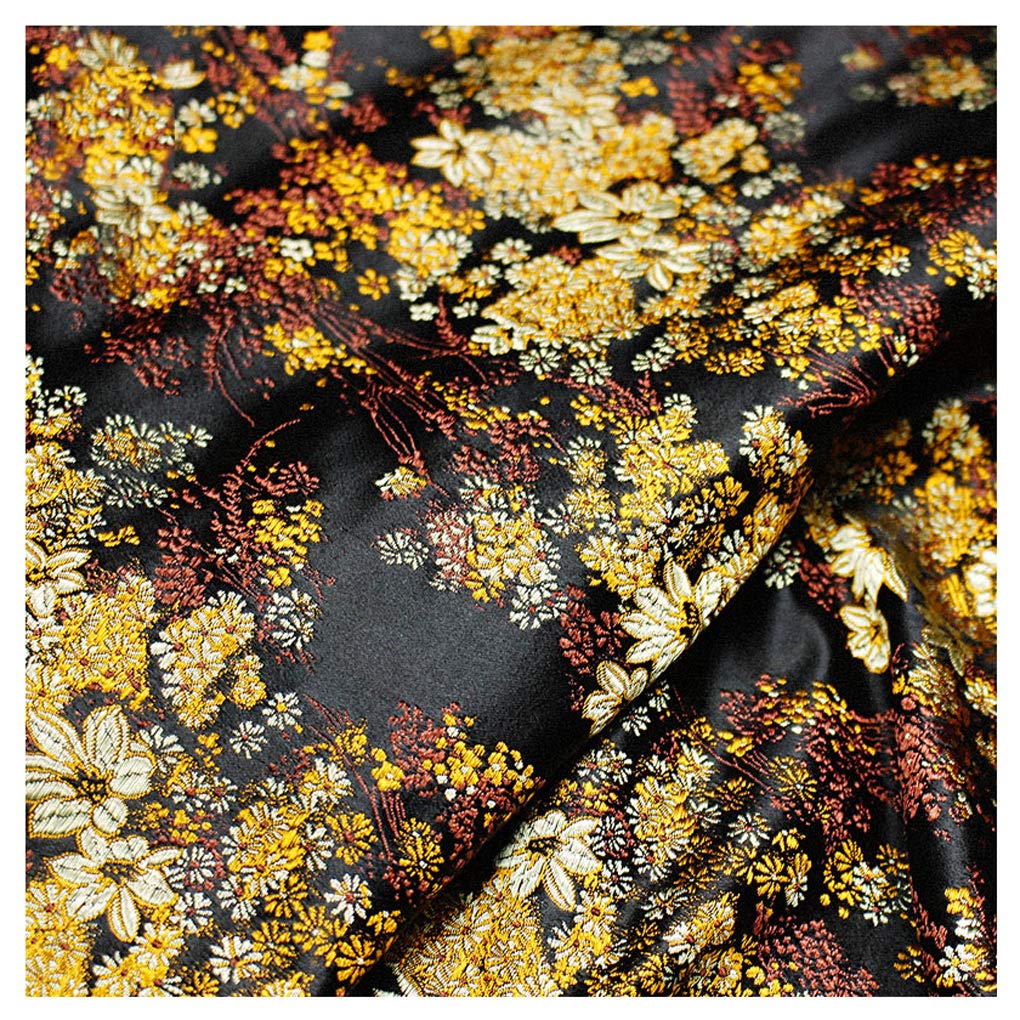 NAKAN Black Brocade Satin Fabric Japanese Style Gold Floral Pattern 75cm Width Wrap Cloth Faux Silk for Sewing DIY Crafts, Costume, Bags, Decorations(