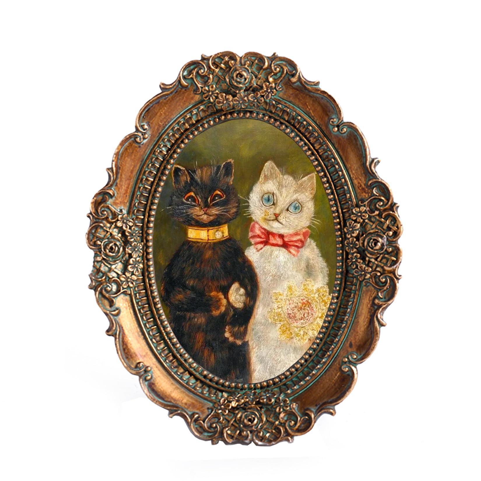 VINLIFE Antique Mini Picture Frames 2.5x3.5 Small Vintage Oval Picture Frames Wallet Size Cat Photo Frame with Embossed Floral Design Victorian Ornate