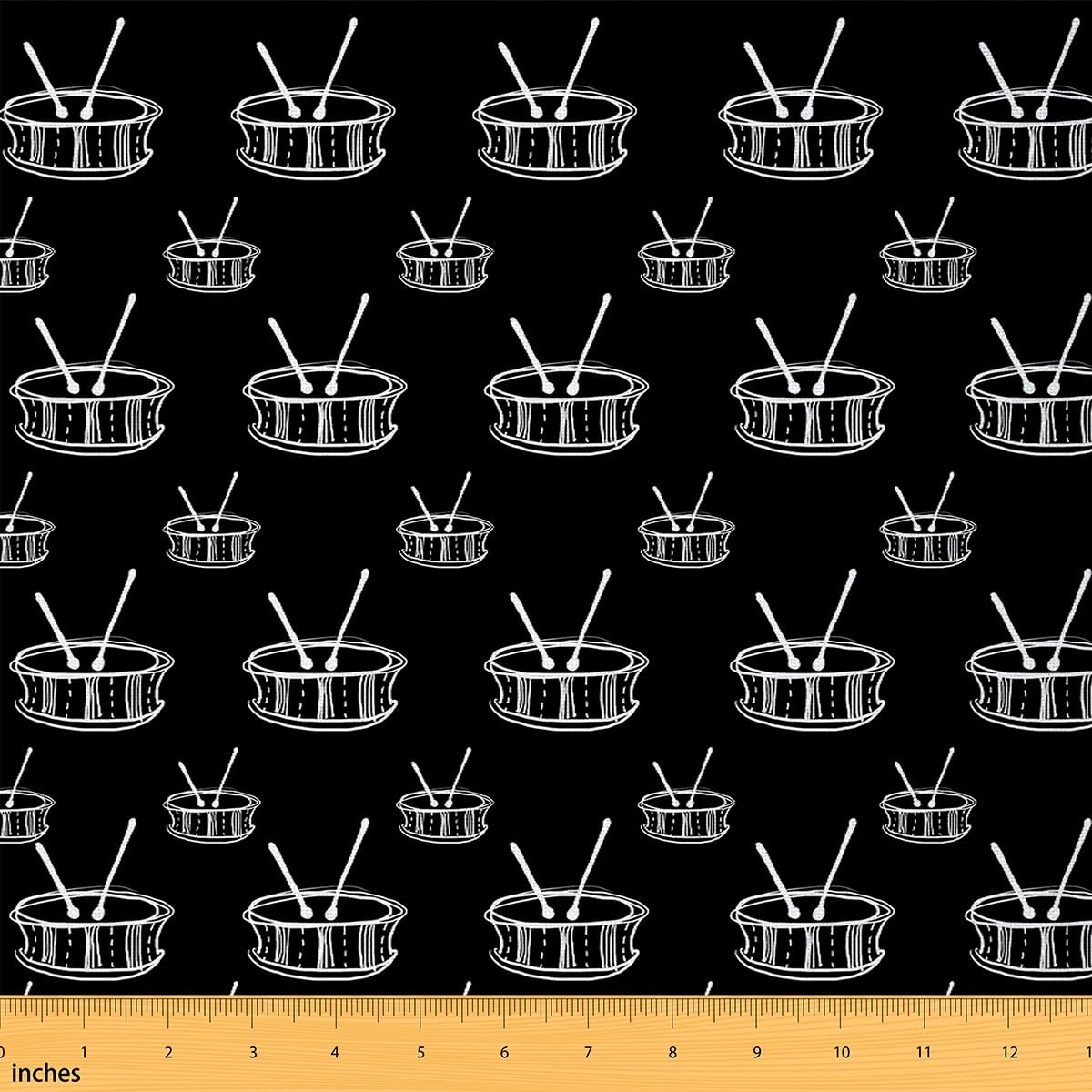 Feelyou Drum Kit Fabric by The Yard, Rock Music Upholstery Fabric for Chairs, Musical Theme Instrument Hip Hop Decorative Modern Art Waterproof