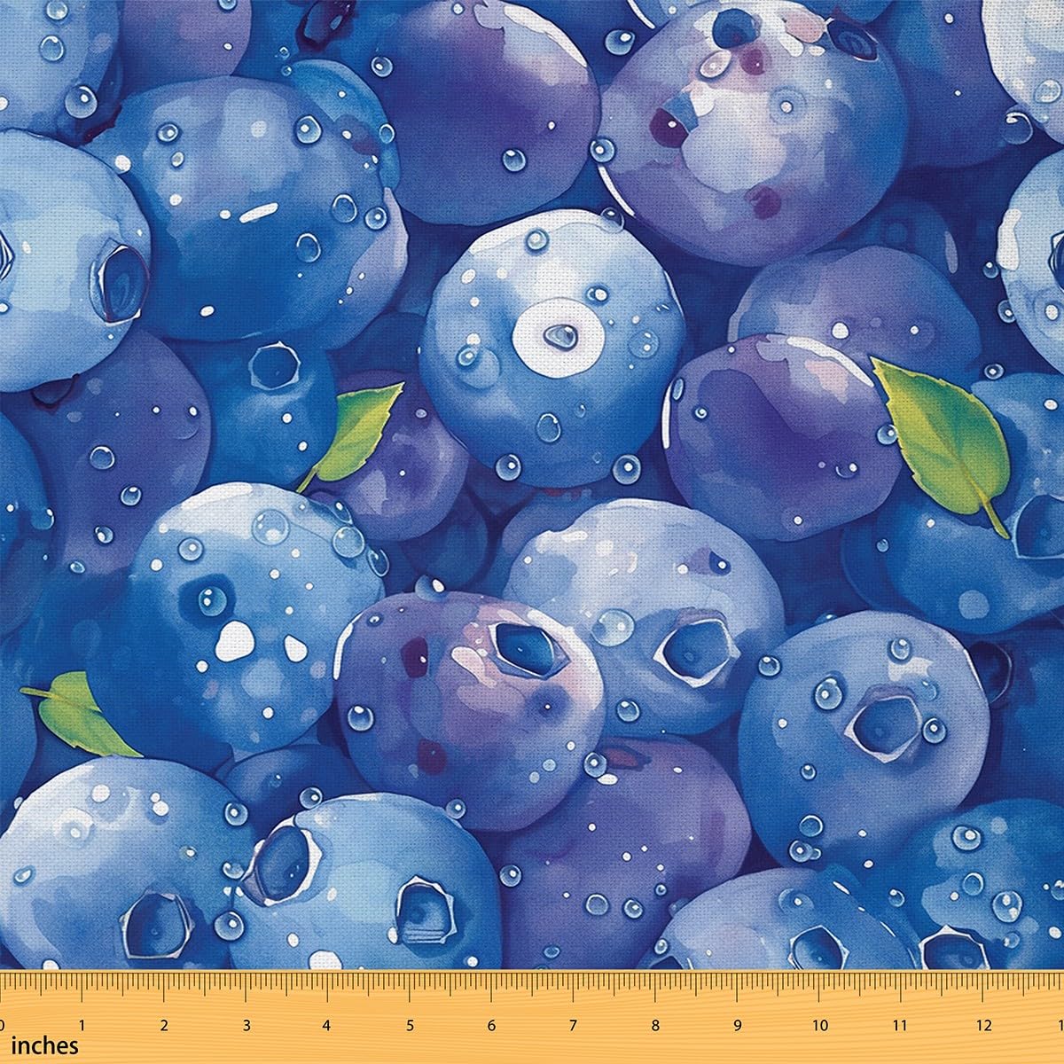 Feelyou Blueberries Fabric by The Yard 10 Yards Fresh Fruits Decorative Waterproof Outdoor Fabric for Boys Girls Blue Purple Upholstery Fabric for