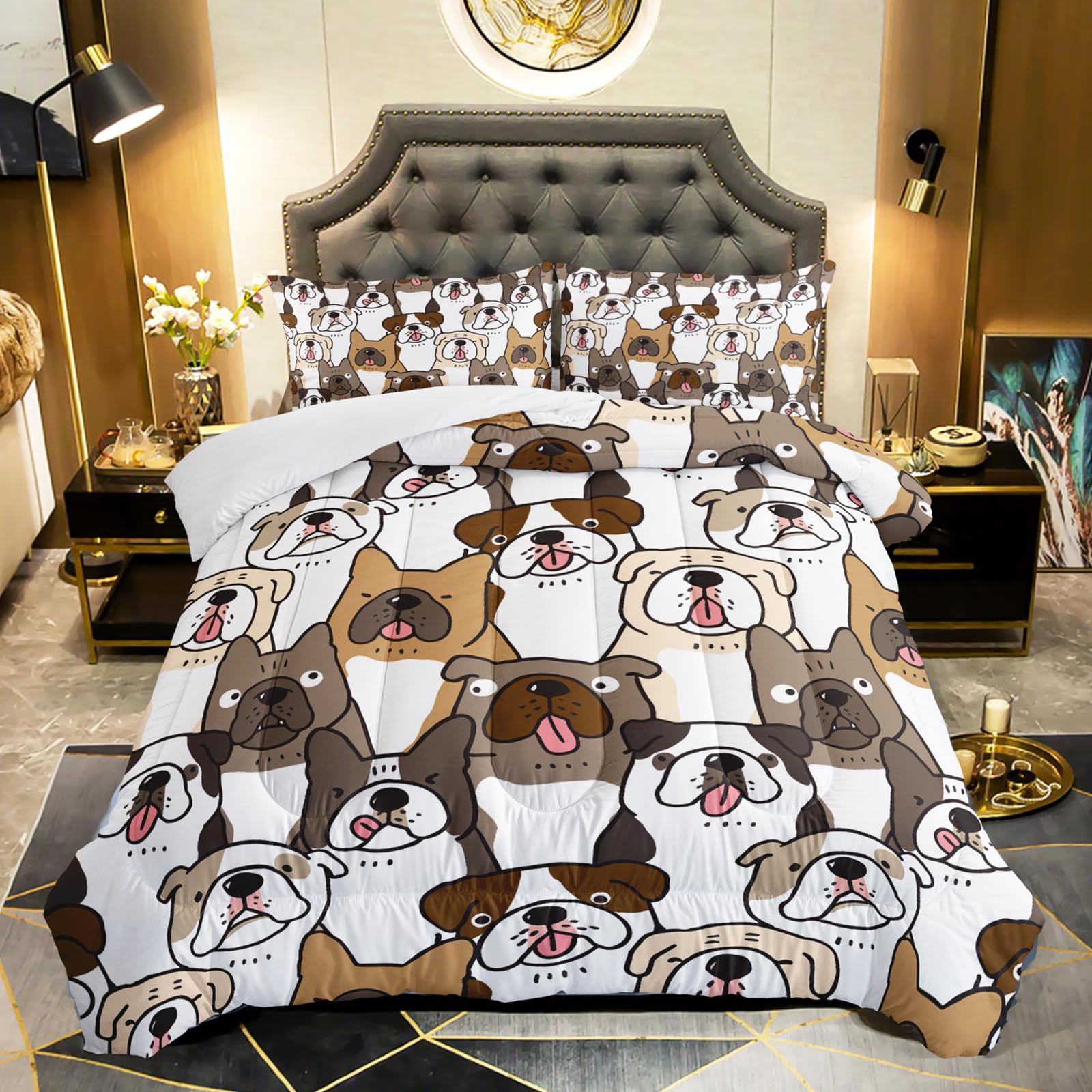 QOOMO Kawaii Dog Comforter Full Size,Dogs Comforter Set for Kids Teens Girls Boys,3Pcs Bedding Set Printed Comforter with 2 Pillowcases,Down