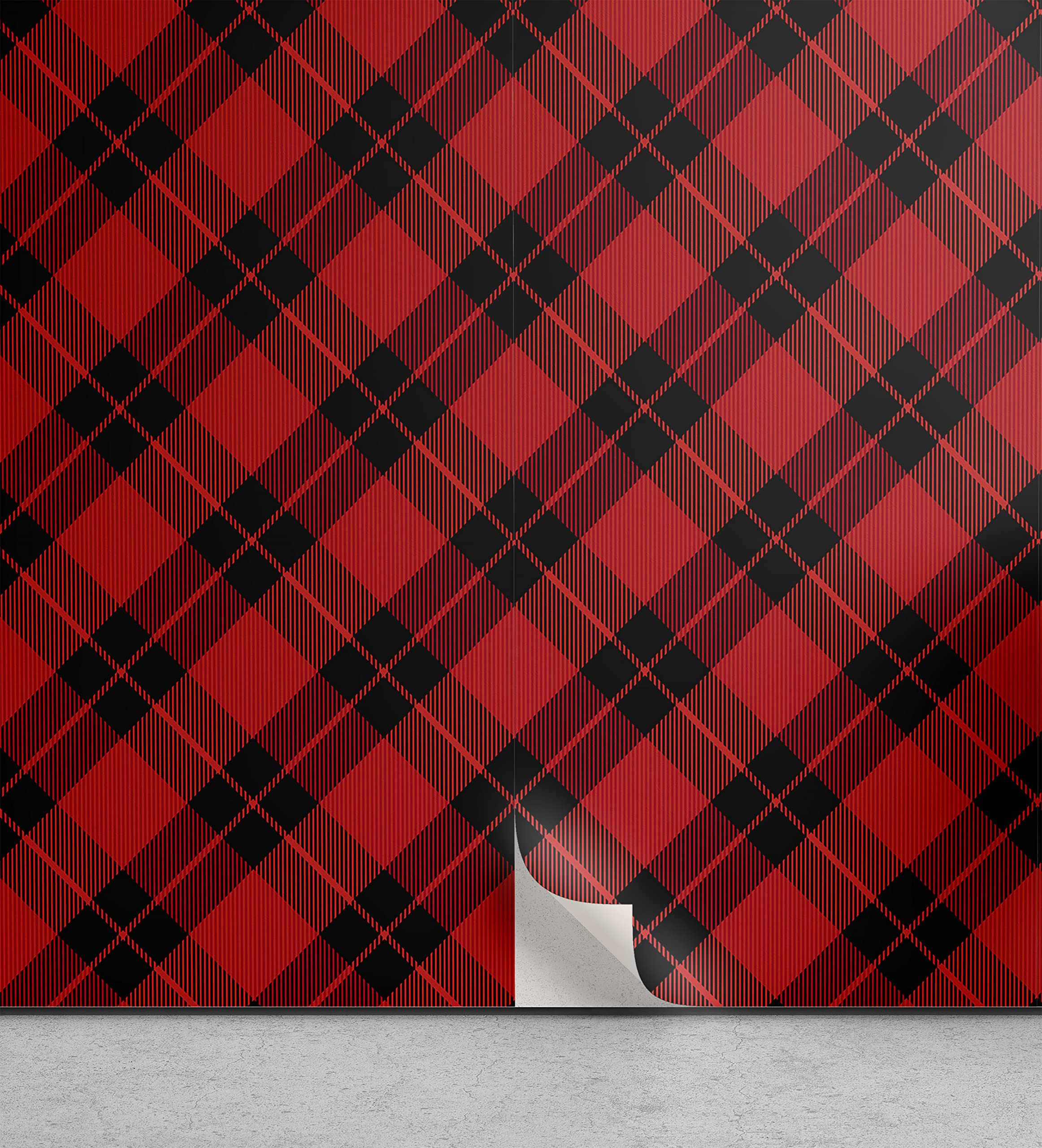 Ambesonne Plaid Peel & Stick Wallpaper for Home, Classic Design Checkered Squares Diagonal Look Lumberjack Cozy Christmas Vibes Print, Self-Adhesive