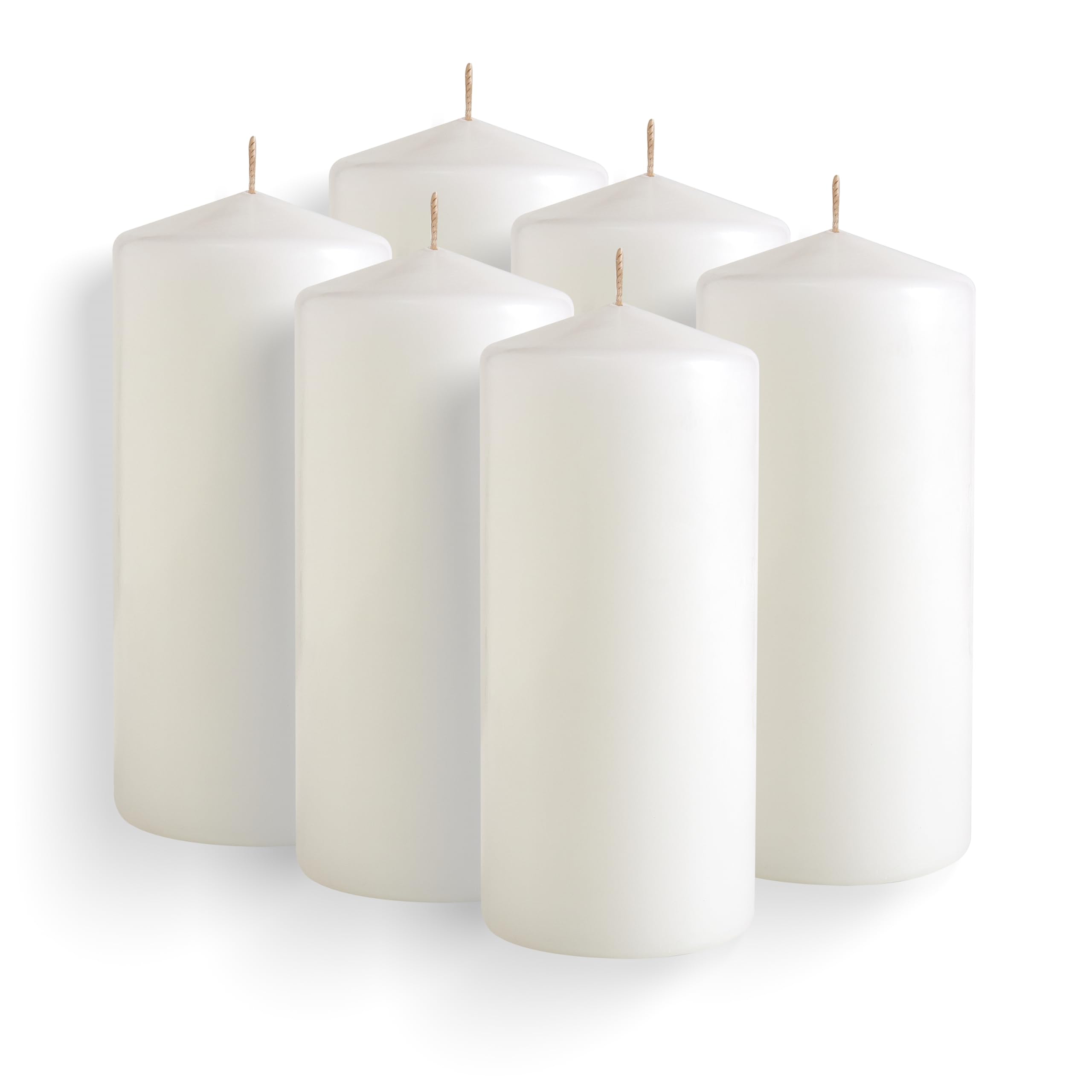 Simply Soson 3x6 inch White Pillar Candles - Set of 6 Emergency Tall Candles, Unscented, Cone Tip