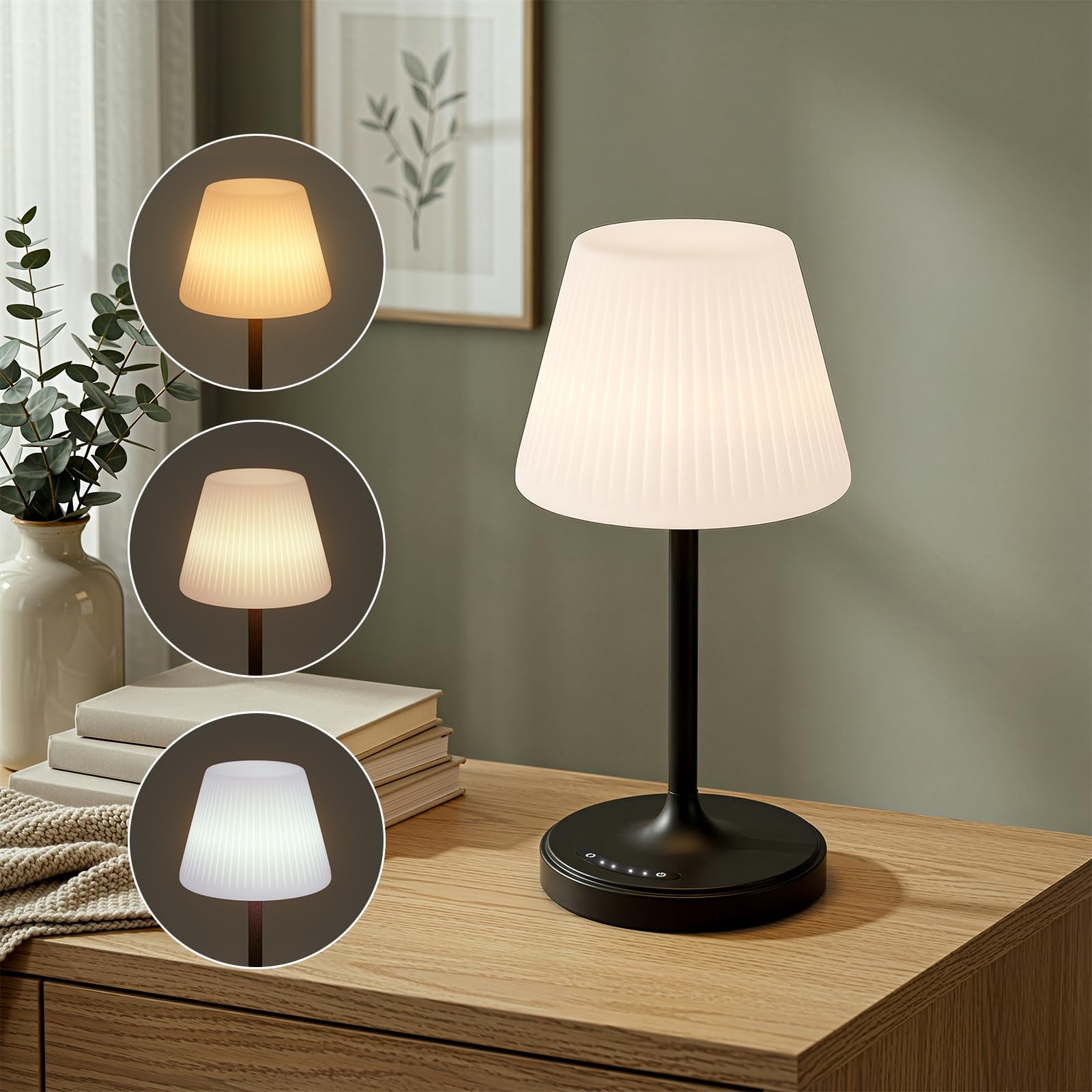 Cordless Table Lamp, Waterproof Shower Lamp, 4000mAh Rechargeable Table Lamps, 3-Color Dimmable Light, Battery Operated Lamp Desk Night Lamp for