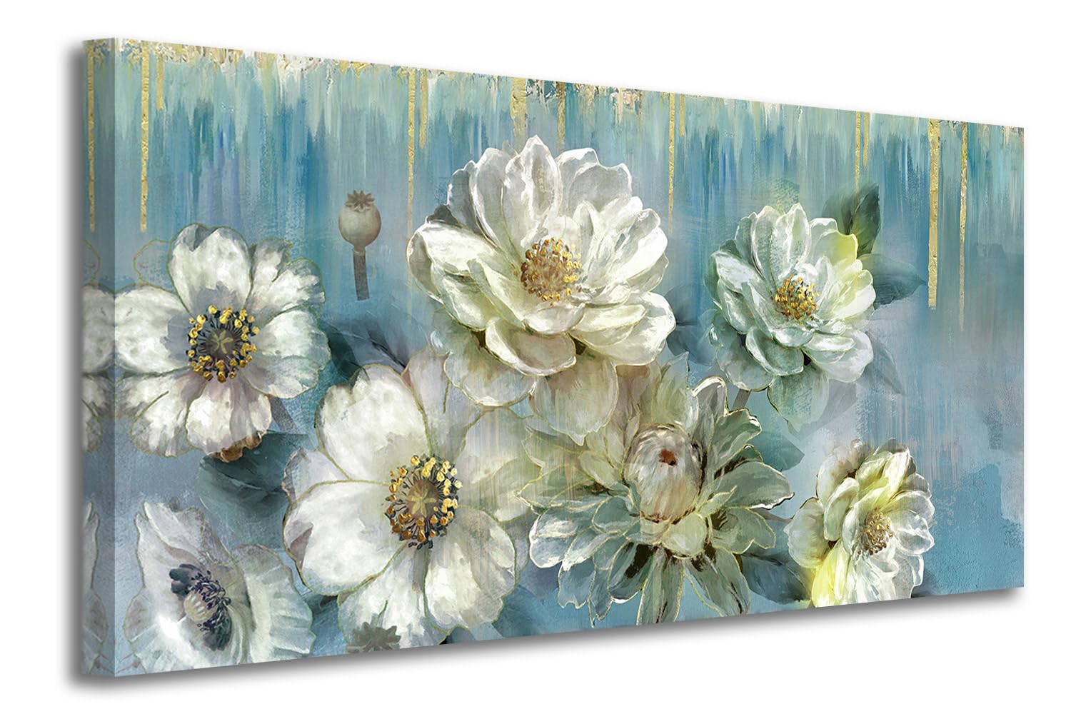 Ardemy Floral Canvas Wall Art for Living Room Large Magnolia White Flower Picture Bedroom Wall Decor Textured Turquoise Painting Modern Artwork Dining