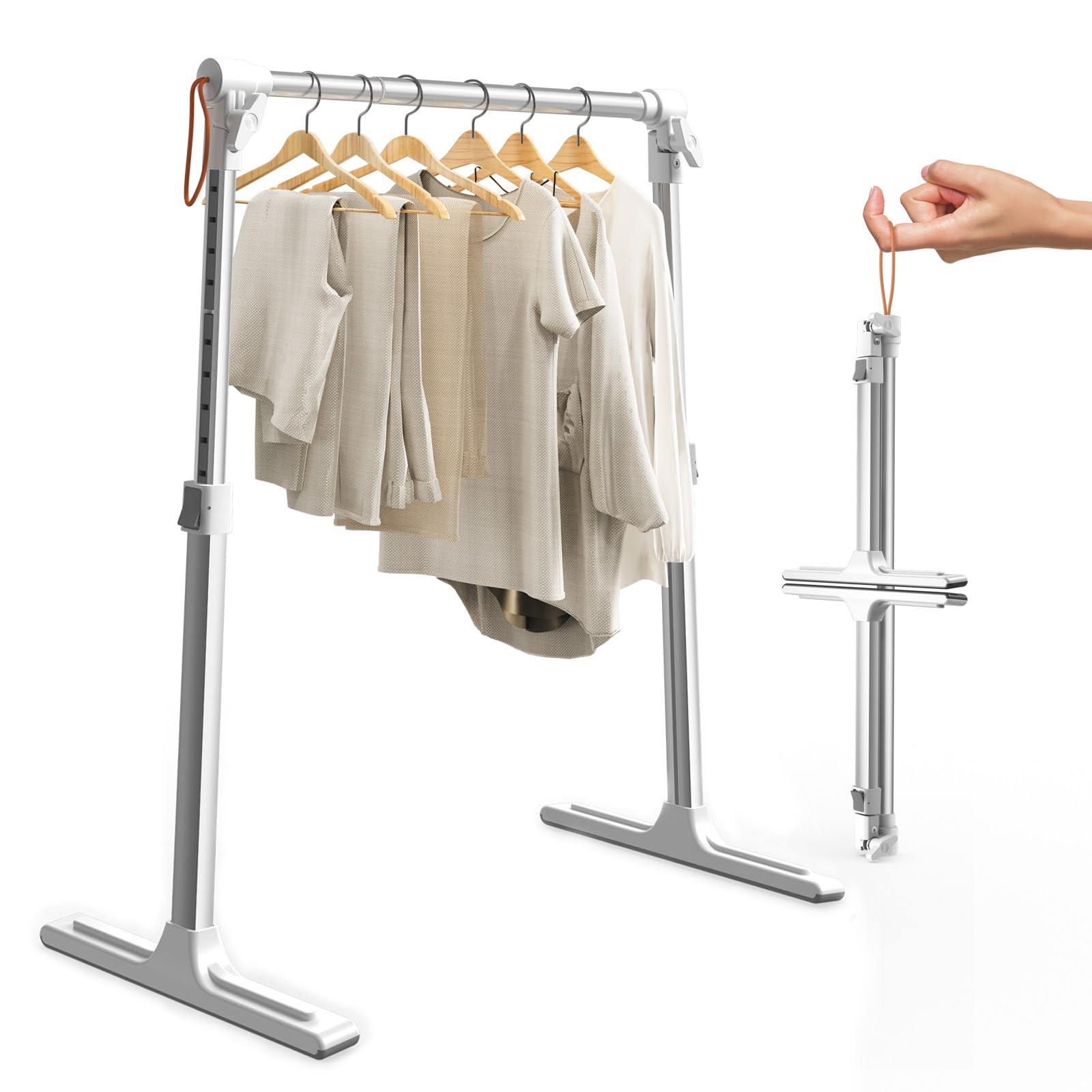 Foldable & Portable Space Saver: This closet rod is ingeniously designed to fold flat in seconds, making storage a breeze. Perfect as a small space solution for apartments, dorms, RVs, or temporary setups. Take it anywhere as a portable clothing rack or clothes drying rack without eating up precious