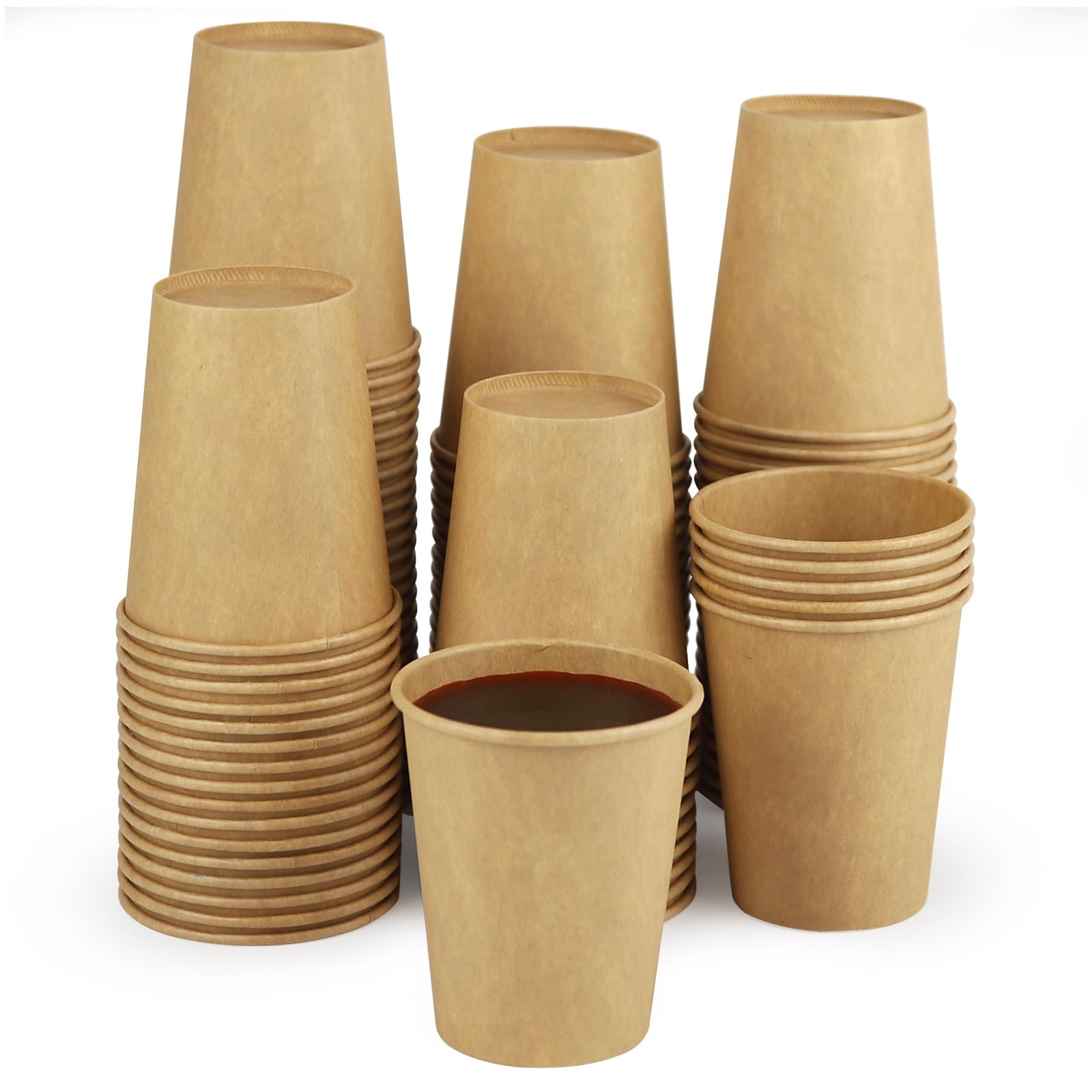 Walasaso Paper Cups, 50 Pack 8 Oz Kraft Paper Coffee Cups, Disposable Cups for Hot or Cold Beverage, Paper Cups 8 Oz for Office Home Party